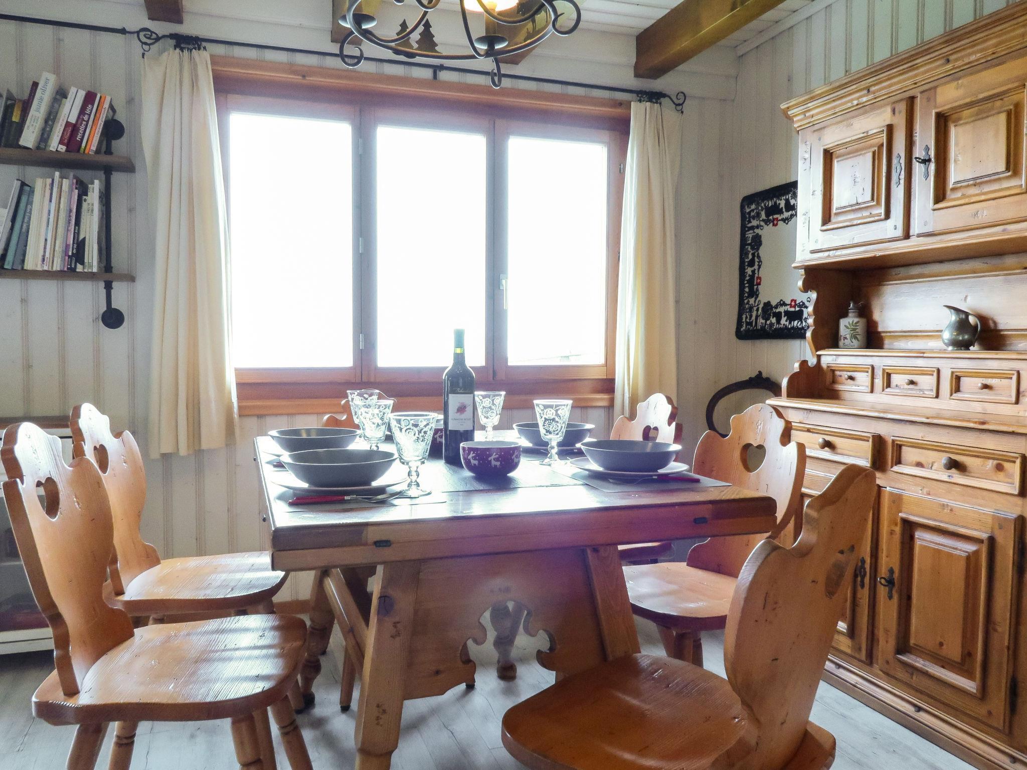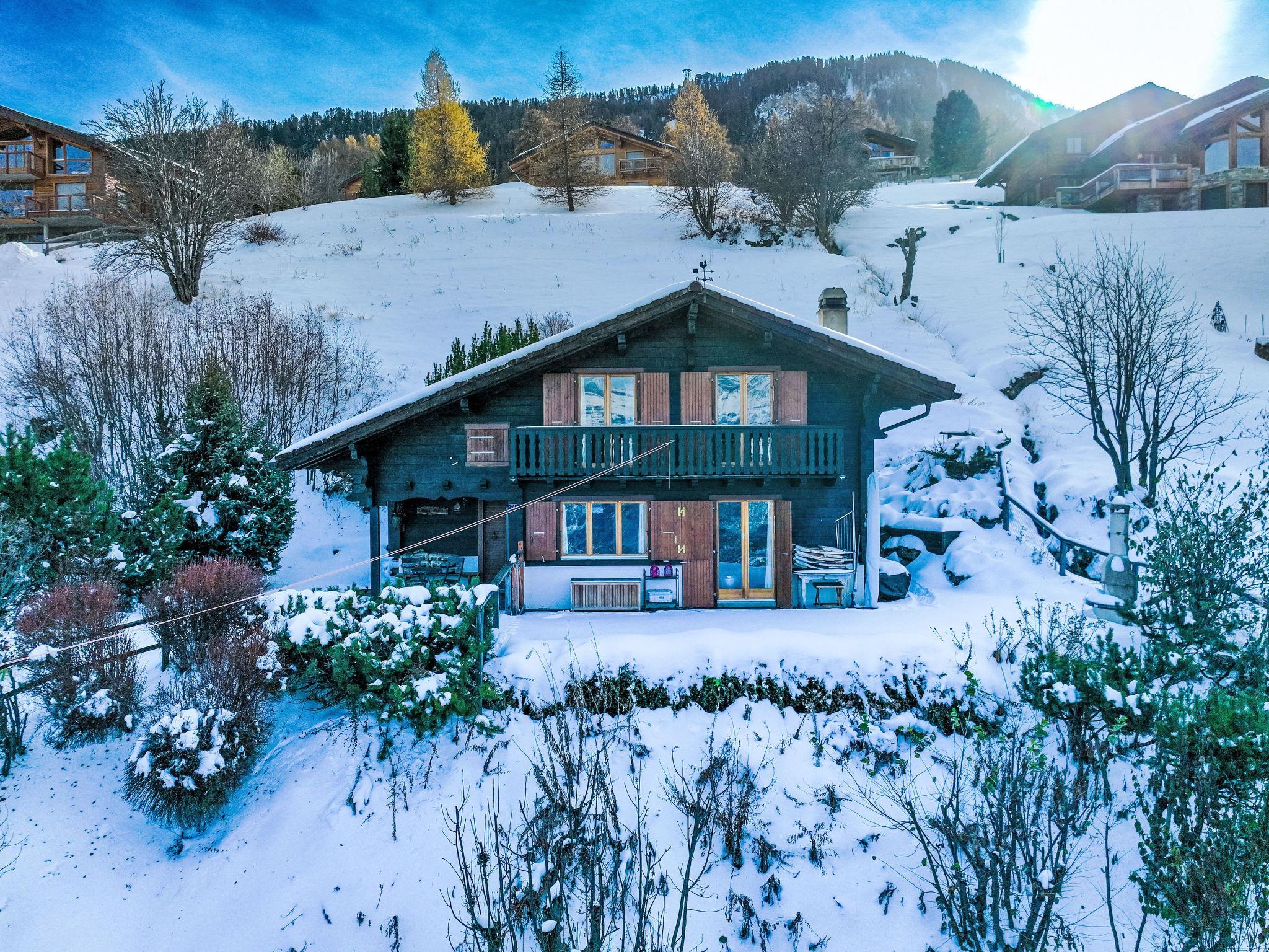 "Cheechako", 4-room chalet 100 m2 on 2 levels. Comfortable and beautiful furnishings: small entrance hall. Living/dining room with Scandinavian wood stove and cable TV. Exit to the terrace, north facing position and west facing position. Kitchenette (oven, dishwasher, 4 ceramic glass hob hotplates, toaster, kettle, electric coffee machine, Capsules for coffee machine (Nespresso) extra, raclette grill, fondue Set (chinoise, cheese)). Shower/WC. Electric heating. Upper floor: 1 room with 1 french bed (180 cm, length 200 cm). Exit to the balcony, north facing position. 1 room with 1 double bed (2 x 90 cm, length 190 cm). Exit to the balcony, north facing position. 1 room with 1 pull-out bed (2 x 80 cm, length 200 cm). Bath/WC. Garden, north facing position and west facing position. Terrace furniture, barbecue, deck chairs (4). Very beautiful view of the mountains and the valley. Facilities: washing machine, hair dryer. Internet (WiFi, free). Parking (1 car).