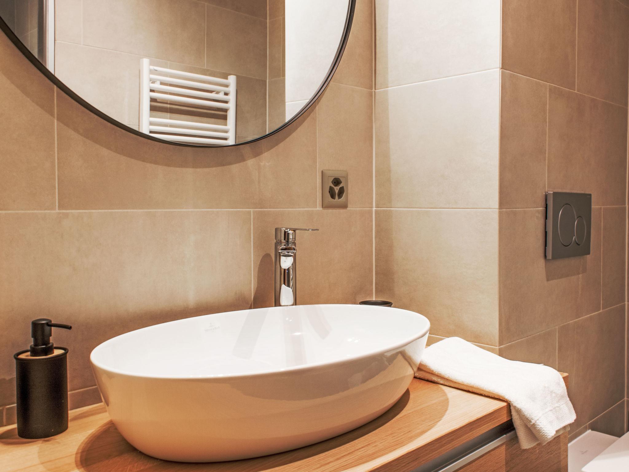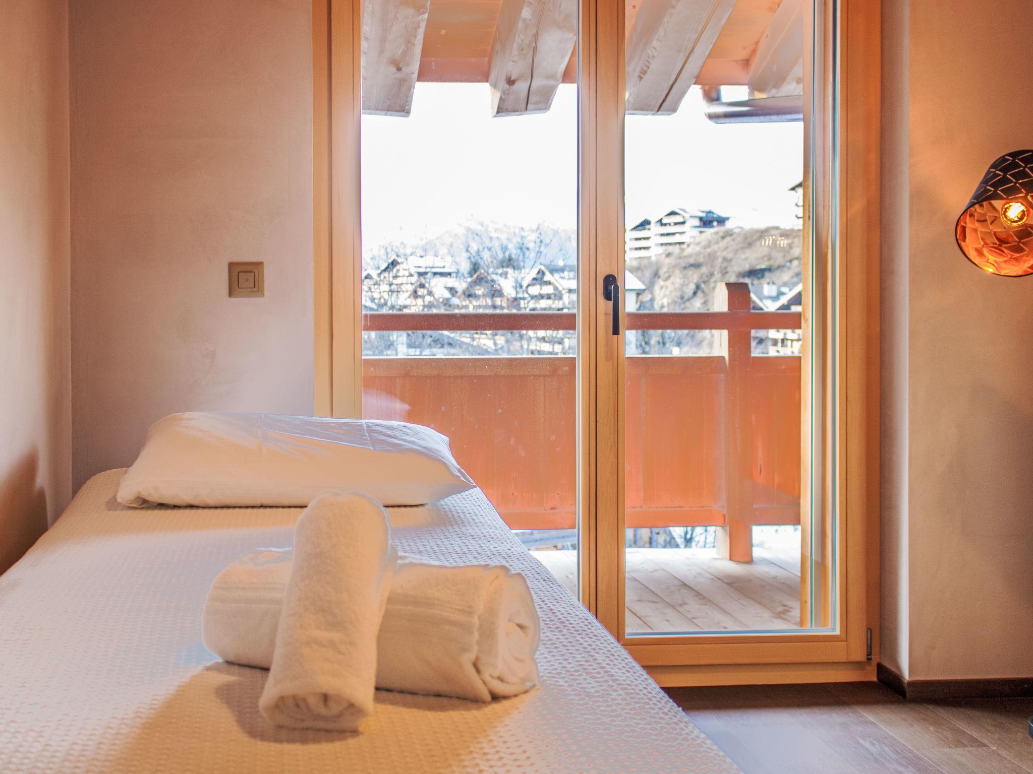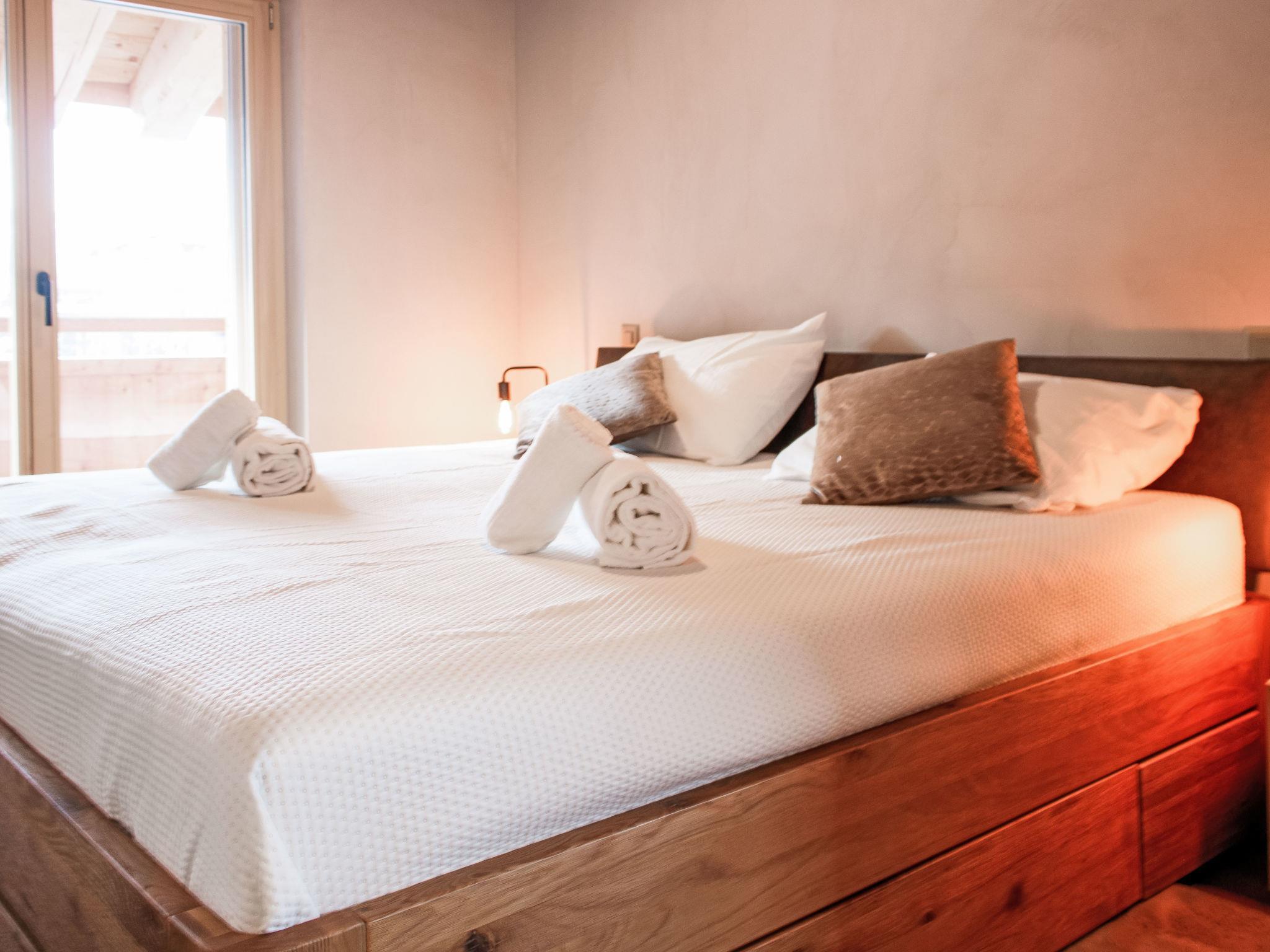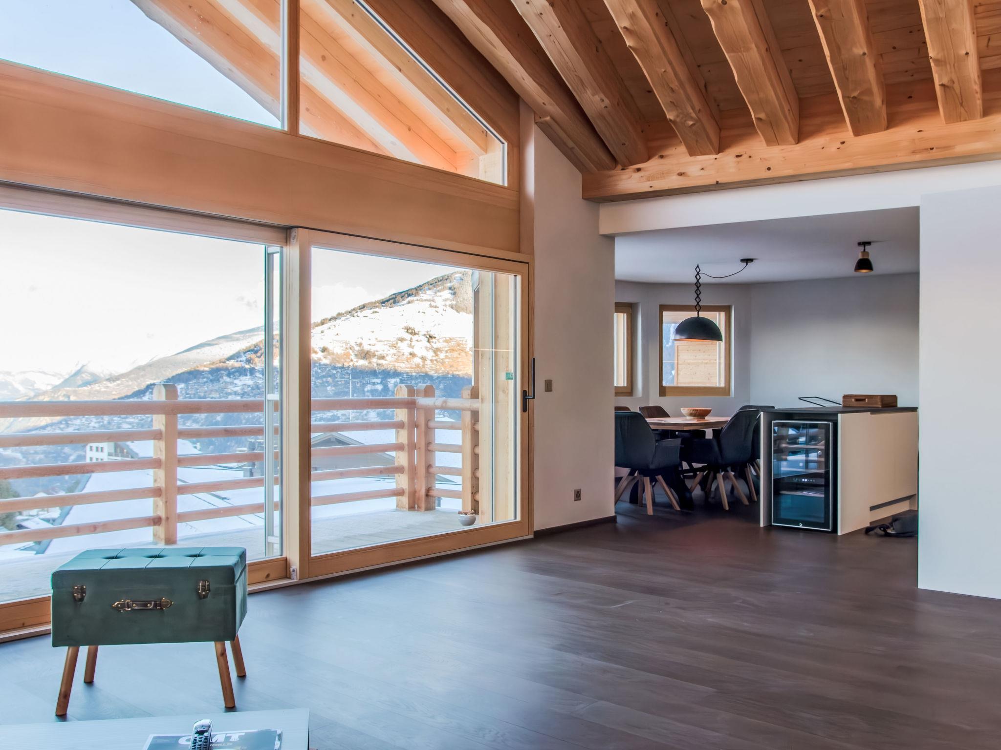 "Bike & Ski 301", 4-room penthouse 128 m2 on 3rd floor, north-east facing position. Spacious, comfortable and tasteful furnishings: large living/dining room with cable TV. Exit to the terrace. 1 room with 1 french bed and shower/WC. Exit to the terrace. 1 room with 1 french bed and shower/WC. Exit to the terrace. 1 room with 1 pull-out bed (2 pers.), shower/WC. Open kitchen (oven, dishwasher, 4 induction hot plates, toaster, kettle, microwave, electric coffee machine, Capsules for coffee machine (Nespresso) extra, raclette grill, fondue Set (cheese)). Sep. WC. Underfloor heating. Marvellous panoramic view of the mountains. Facilities: washing machine, dryer, hair dryer. Internet (WiFi, free). Parking (roofed). Please note: non-smokers only.