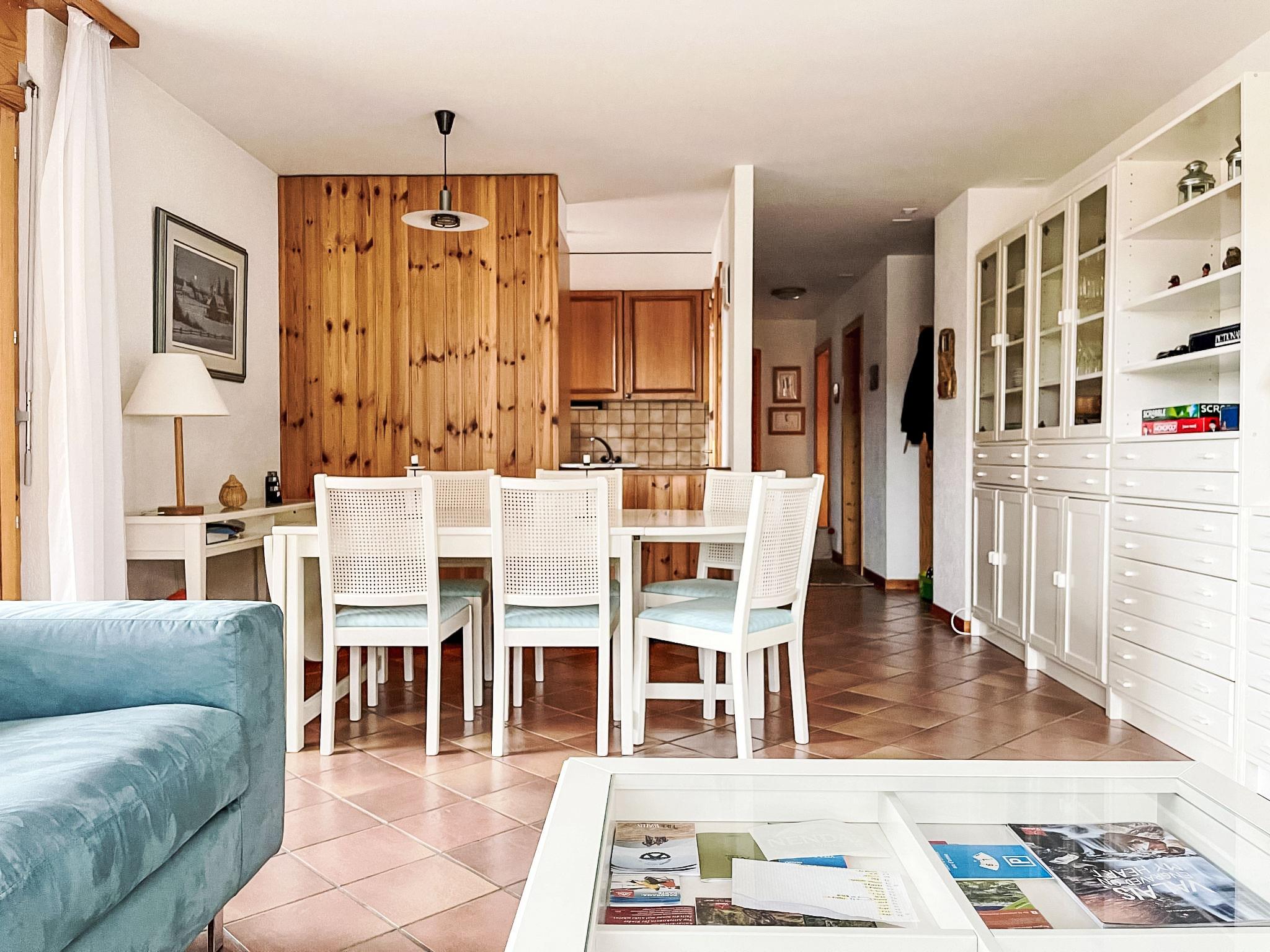 "Ambassador I Apt 7", 3-room apartment 75 m2 on 2nd floor. Living/dining room with 1 sofabed (160 cm, length 190 cm), cable TV and DVD. Exit to the balcony. 1 room with 1 french bed (160 cm, length 200 cm). Exit to the balcony. 1 room with 2 beds (90 cm, length 200 cm). Exit to the balcony. Kitchen (oven, dishwasher, microwave, raclette grill, fondue Set (cheese)). Bath/WC, shower/WC. Large balcony 45 m2, north facing position and west facing position, small balcony, north facing position and, east facing position. Terrace furniture. Beautiful view of the mountains. Facilities: hair dryer. Internet (WiFi, free). Please note: non-smokers only. CH1961.831.3