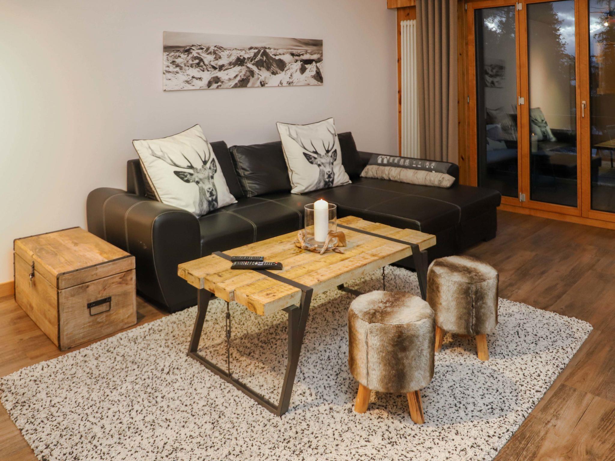"Chaedoz 24-1", 2-room apartment 70 m2 on 2nd floor. Object suitable for 2 adults + 2 children. Spacious, comfortable and modern furnishings: living/dining room with open-hearth fireplace (only for decoration), cable TV and DVD. 1 room with 1 french bed (160 cm, length 200 cm). Exit to the balcony, east facing position. Alcove with 1 x 2 bunk beds (70 cm, length 180 cm). Open kitchen (oven, dishwasher, 4 ceramic glass hob hotplates, toaster, kettle, electric coffee machine, raclette grill, fondue Set (chinoise, cheese)). Exit to the balcony, west facing position. Bath/WC. Balcony, west facing position balcony, east facing position. Balcony furniture. Beautiful panoramic view of the mountains. Facilities: children's high chair, baby cot, hair dryer. Internet (WiFi, free). Parking (roofed). Please note: non-smokers only. Instead of an enclosed bedroom, some sleeping areas are located in an open-plan area (gallery, alcove, etc.).