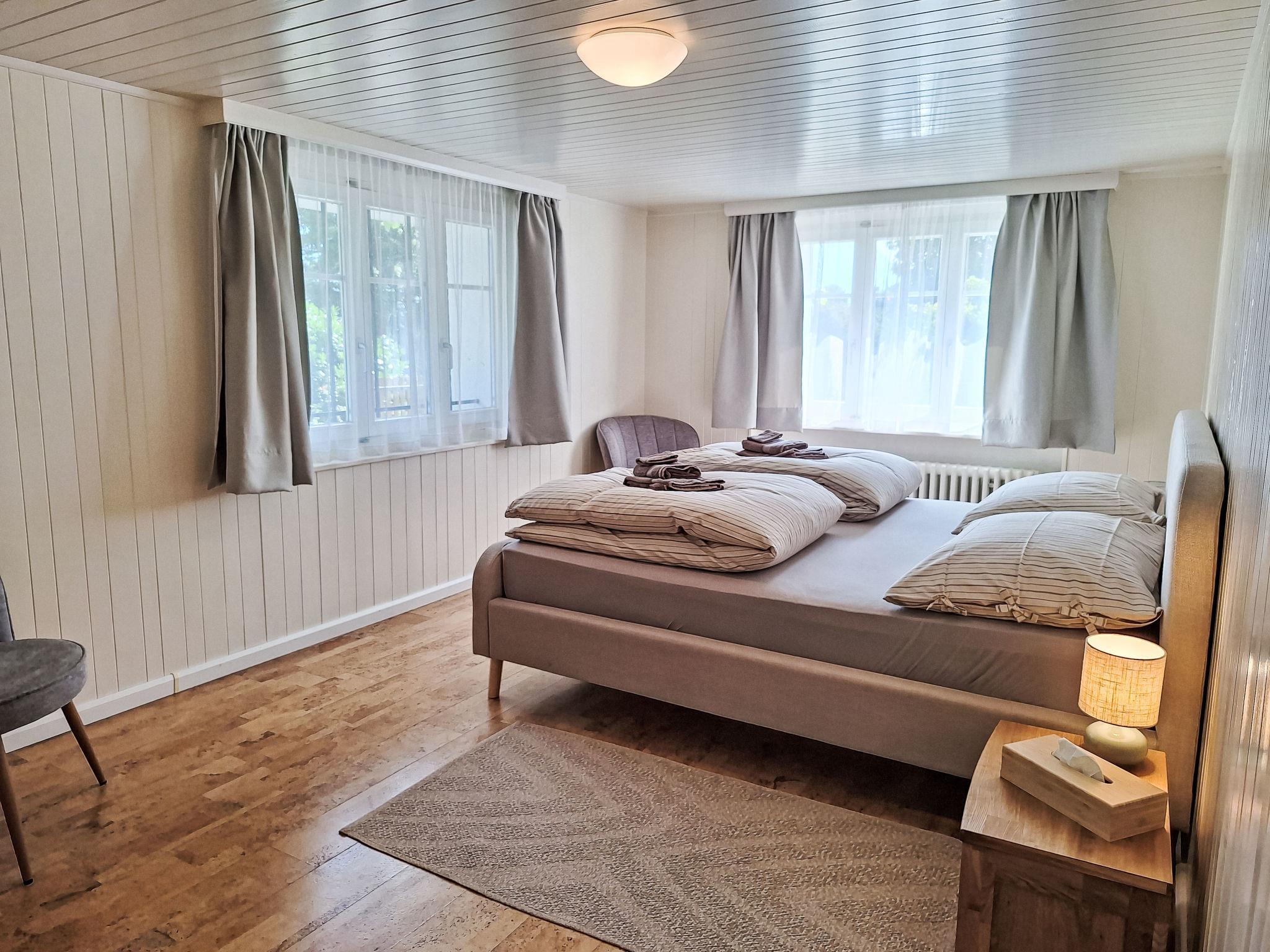 Very beautiful chalet "Haus am See", 3 storeys, detached. In a sunny position, 10 m from the lake. Private: natural state property, terraced garden (not fenced), lawn for sunbathing. Bathing place. In the house: central heating system, washing machine, tumble dryer, drying room. Parking on the premises. Shop 8.5 km, grocery 4 km, supermarket 8 km, restaurant 250 m, bus stop "Niederried Dorf" 350 m, railway station "Niederried" 400 m. Golf course (18 hole) 15 km. Nearby attractions: Jungfraujoch Top of Europe, Schilthorn Piz Gloria, Freilichtmuseum Ballenberg, Interlaken. Well-known ski regions can easily be reached: Grindelwald Kleine Scheidegg 26 km, Meiringen Hasliberg 27 km. Well-known lakes can easily be reached: Brienzersee, Thunersee. Hiking paths: Jungfrau Region. Please note: railway line closeby.