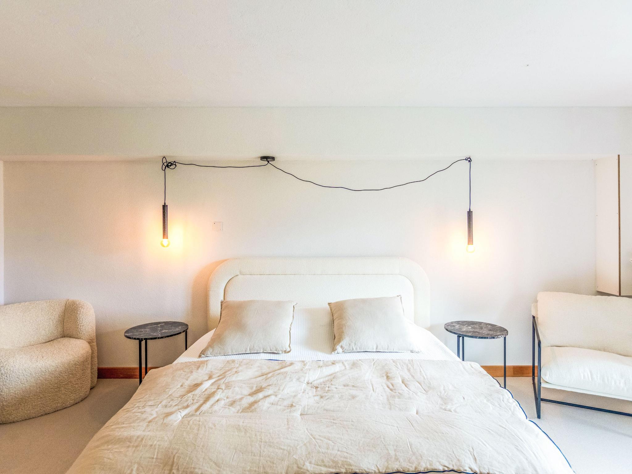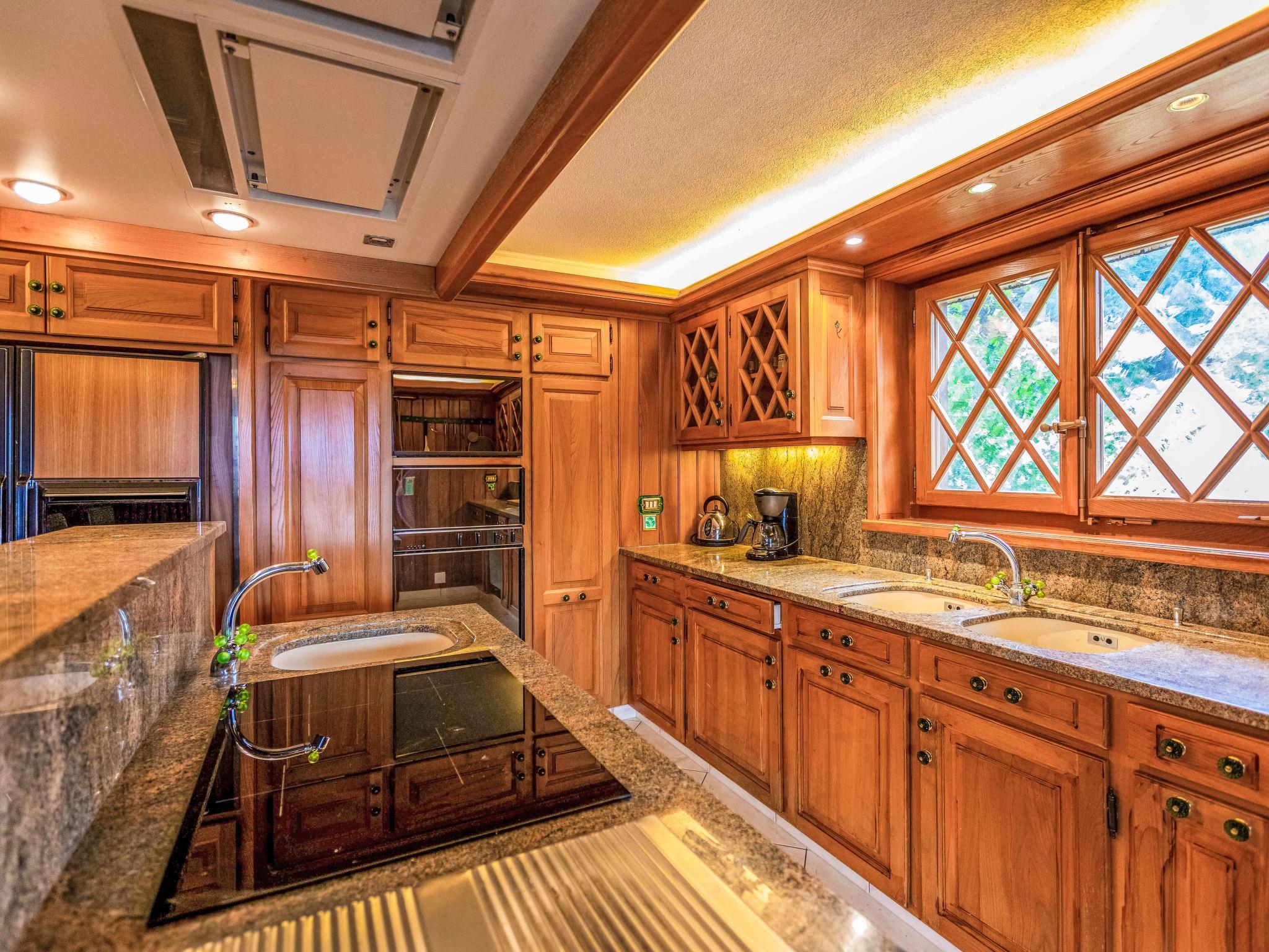 "Champ de Brent", 8-room chalet 500 m2 on 3 levels, south facing position. Comfortable and stylish furnishings: large living/dining room with open-hearth fireplace and bar. Exit to the terrace, south-east facing position and south facing position. Large entrance hall. Office. Open kitchen (dishwasher, 4 induction hot plates, toaster, kettle, microwave, freezer, electric coffee machine) with bar. Sep. WC. On the lower ground floor: 1 room with 1 double bed (160 cm, length 200 cm), bath/bidet/WC. Exit to the garden, to the terrace. 1 room with 1 double bed (160 cm, length 200 cm). Exit to the terrace. Large living room. Exit to the garden, to the terrace, south facing position. Sep. WC. Upper floor: 1 large room with 1 double bed (180 cm, length 200 cm), bidet, separate WC, shower/WC and double hand-basin. Exit to the balcony. 1 room with 1 double bed (160 cm, length 200 cm). Exit to the balcony. 1 room with 1 double bed (160 cm, length 200 cm), bath/WC. Exit to the balcony. Bath/bidet/WC. Carpet. Balcony, large terrace. Terrace furniture. Marvellous view of the mountains, the countryside and the resort. Parking (4 cars), garage (1 car). Please note: non-smokers only.