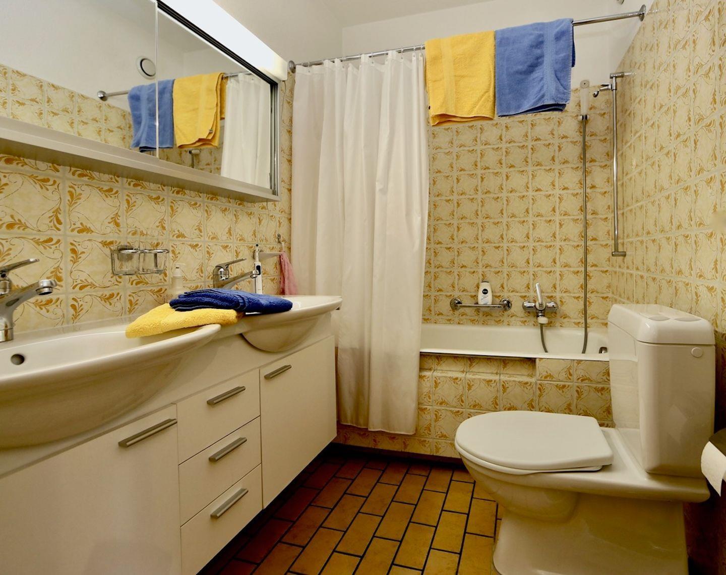 Bad mit Badewanne/Dusche und Waschbecken, Haartrockner, separates WC.