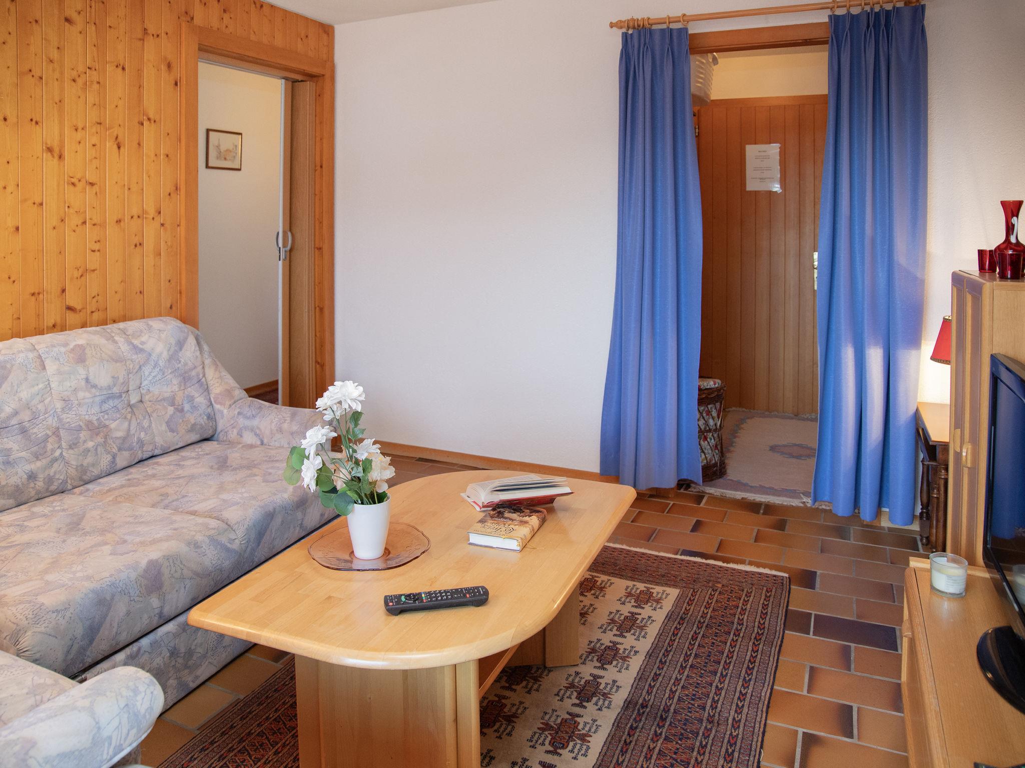 "Beau Site 4", 3-room apartment 80 m2 on 1st floor, south-west facing position. Comfortable and beautiful furnishings: dining room with panoramic window with open-hearth fireplace and cable TV. Exit to the balcony. Lounge with 1 double sofabed, shower/WC and cable TV. Exit to the balcony. 1 room with 1 french bed (160 cm), radio. 1 room with 2 pull-out beds (2 pers. 2 x 80 cm). Kitchenette (4 hot plates, oven, dishwasher, toaster, kettle, microwave, freezer, electric coffee machine, Capsules for coffee machine (Nespresso) extra). Bathroom. Large balcony 20 m2, south-west facing position. Terrace furniture, deck chairs. View of the mountains. Facilities: baby cot for up to 2 year olds. Internet (WiFi, free). Parking. Please note: non-smokers only. Instead of an enclosed bedroom, some sleeping areas are located in an open-plan area (gallery, alcove, etc.).