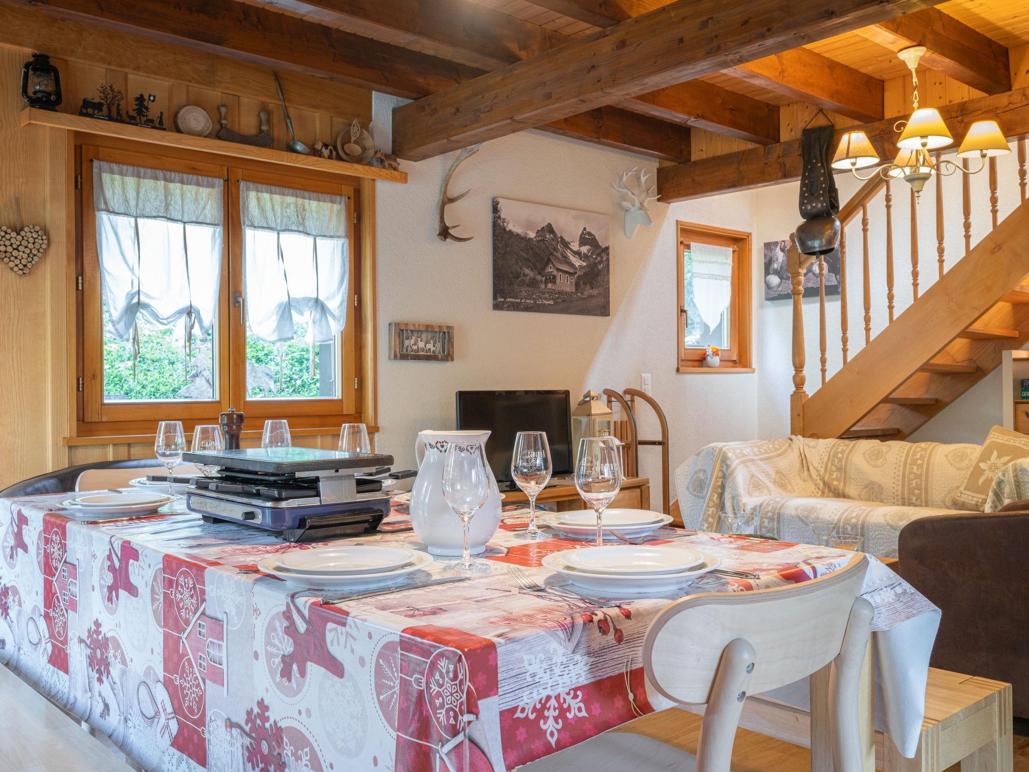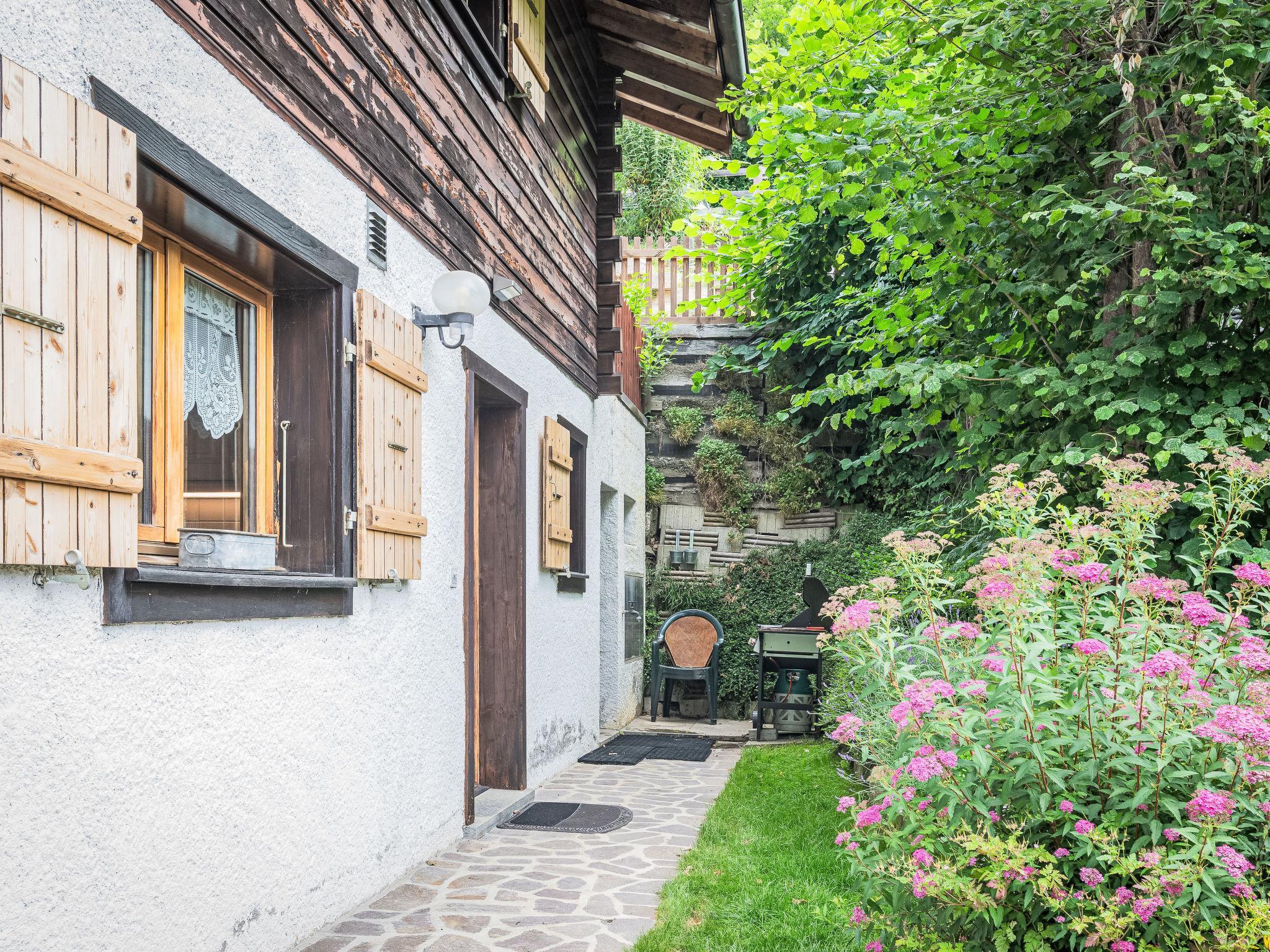 "Le Coeur", 4-room chalet 100 m2 on 2 levels, west facing position. Object suitable for 4 adults + 3 children. With sloping ceilings, partly renovated in 2019, comfortable and wooden furniture furnishings: living/dining room with Scandinavian wood stove, cable TV and radio. Exit to the terrace. Open kitchen (oven, dishwasher, 4 ceramic glass hob hotplates, toaster, kettle, microwave, electric coffee machine, Capsules for coffee machine (Nespresso) extra, raclette grill, fondue Set (cheese)). Shower/WC. Upper floor: 1 room with 1 french bed (180 cm, length 200 cm). Exit to the balcony. 1 room with 1 french bed (180 cm, length 200 cm). Exit to the balcony. 1 children's room with 1 bed (90 cm, length 190 cm), 1 x 2 bunk beds (90 cm, length 190 cm). Bath/WC. Balcony, west facing position, terrace, west facing position, garden, south facing position and west facing position. Terrace furniture, barbecue. Very beautiful view of the mountains and the valley. Facilities: washing machine, dryer, children's high chair, baby cot for up to 2 year olds, hair dryer. Internet (WiFi, free). Parking (1 car) at 20 m. Please note: suitable for families. Non-smoking house. Maximum 1 pet/ dog allowed.