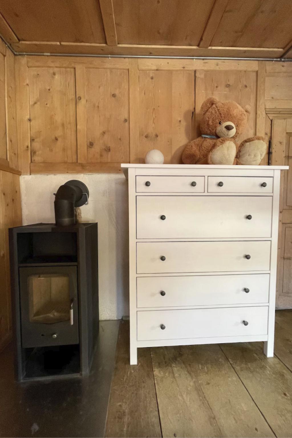 The furnishings of our house are practical and cosy in the style of a mountain hut, with loving details for young and old. Perhaps you're wondering why our house is called "Mucklas"? The stories of Pettersson and Findus accompanied us in our childhood and we would like to pass on this special feeling to your children. In the house you will find all the Pettersson and Findus stories that you can read to your children. As a special extra, little Mucklas are hidden in the house for your children to find in a playful way.