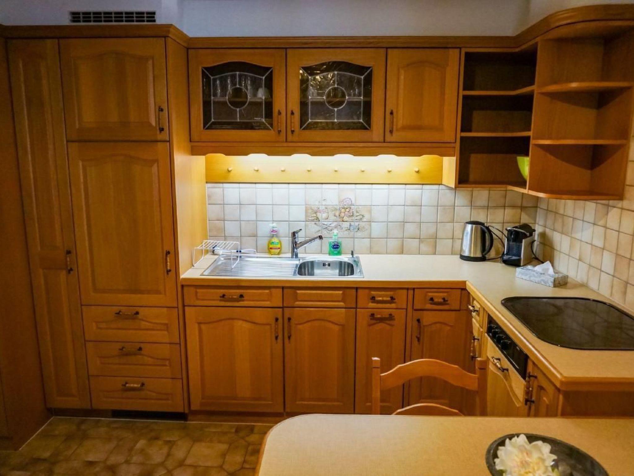 Both the ground floor and the upper floor have a fully equipped kitchen with fridge, hob, oven and dishwasher, as well as a bathroom on each floor.
