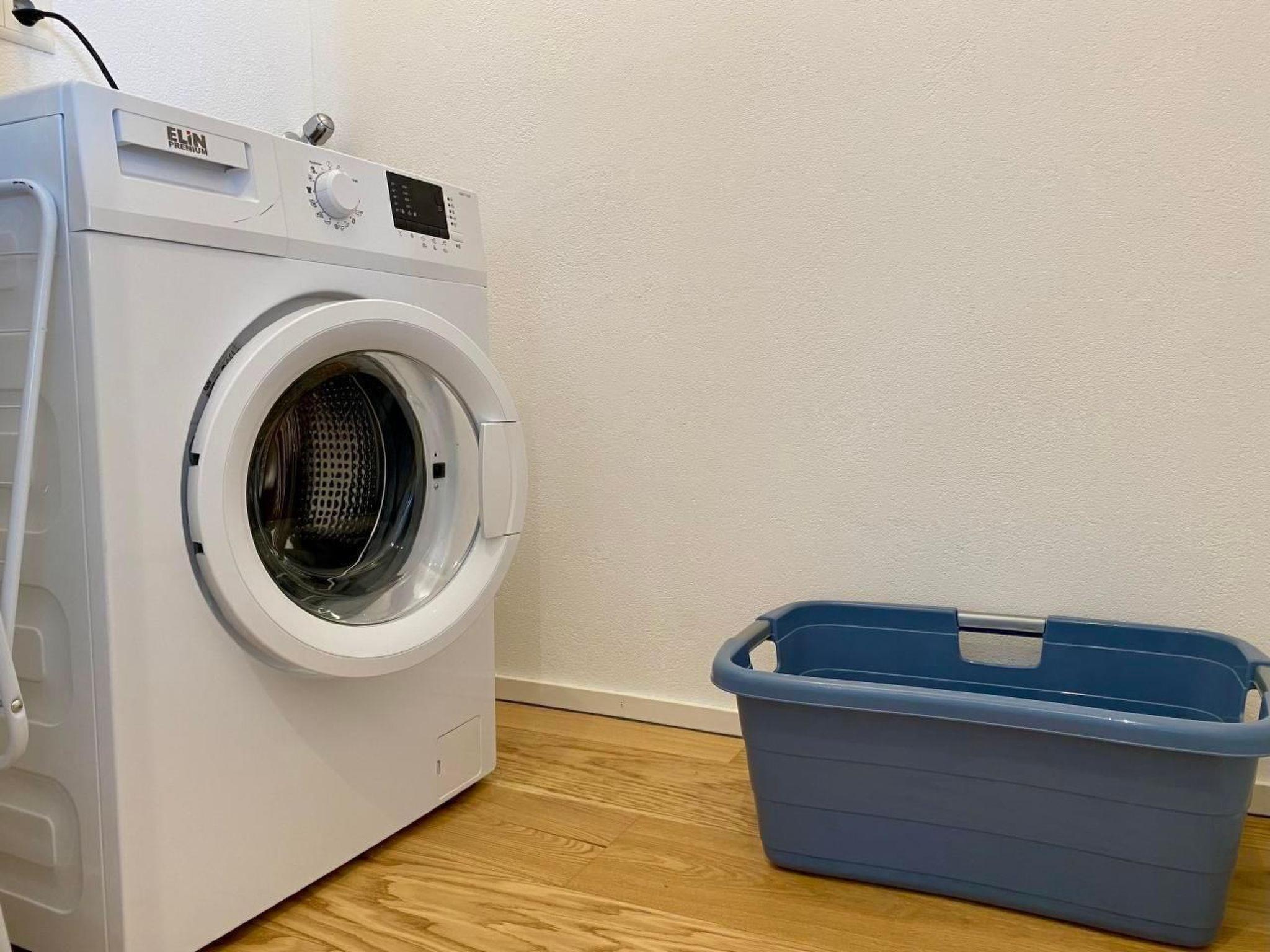The flat has 2 bathrooms, each with shower/WC and hairdryer. The larger bathroom has a double washbasin, shower and bathtub.