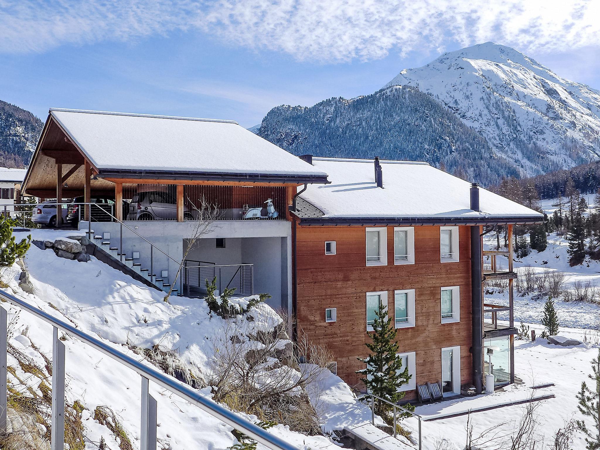 Chesa Lej 7 km from St. Moritz: Very modern timber house "Chesa Lej", built in 2002. In the district of Muragls, in a quiet, sunny position on a slope, 6 km from the lake, 20 m from the river. In the house: central heating system, washing machine, tumble dryer. Motor access to the house. Parking space n M2. Shop 1 km, supermarket 1.8 km, restaurant 1 km, bakery 1 km, café 1.8 km, bicycle rental 2.1 km, bus stop "Pontresina, Godin" 650 m, railway station 2.5 km, indoor swimming pool 2.1 km, lake St. Moritzer See 6 km. Golf course (18 hole) 4.3 km, surf school 12 km, tennis 1.1 km, indoor tennis centre 7.4 km, minigolf 7.2 km, riding stable 2.7 km, walking paths from the house 500 m, cycle lane 1 km, cable car 4.4 km, ski lift 2 km, ski rental 2.1 km, ski school 1.8 km, children's ski school 1.8 km, sled run 1.3 km, cross country ski track 500 m, ice rink 1.1 km, children's playground 1.1 km. Nearby attractions: Museum Alpin 1.9 km, Kirche St. Maria 2.6 km, Alp-Schaukäserei Morteratsch (Sommer) 8 km, Segantini Museum in St. Moritz 7.3 km, Bernina Express UNESCO Welterbe. Well-known ski regions can easily be reached: Corviglia Piz Nair 4.4 km, Diavolezza - Lagalb 14 km, Corvatsch - Furtschellas 13 km. Well-known lakes can easily be reached: St. Moritzer See 6 km, Silvaplaner See 11.6 km, Silser See 15.5 km. Hiking paths: Stazerwald & Stazersee, Muottas Muragl, Val Roseg & Val Morteratsch. Please note: no lift. Loading and unloading of baggage is possible at the holiday house.