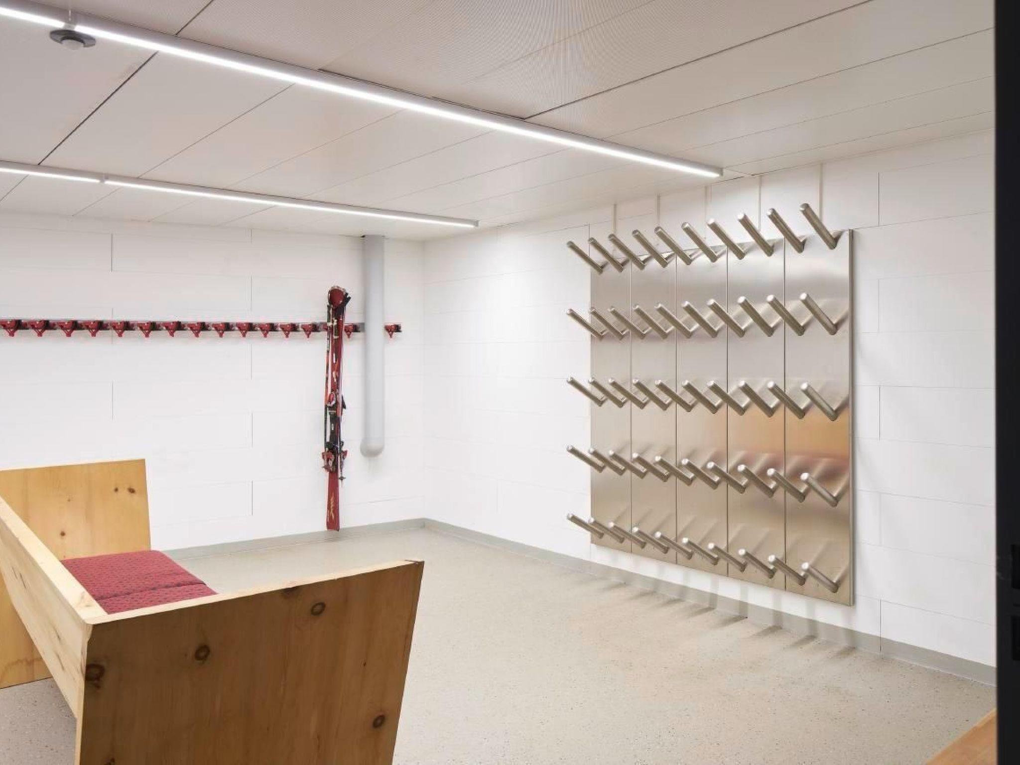 At the on-site spa, guests have access to our sauna, steam room and massage room. A connecting passage leads to the relaxation area and gym in the adjoining Chesa al Parc with direct access to the outside area with wooden deck, beach chairs, cushions and outdoor shower. Also available: a parking garage with four charging stations for electric vehicles.