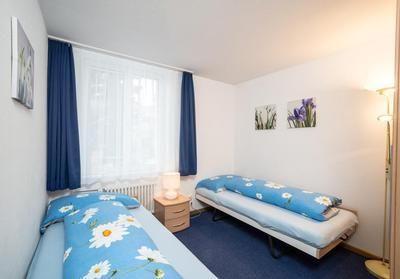 The flat has two bedrooms, both of which can be darkened to guarantee you a restful night's sleep. You will find everything your heart desires in the very well-equipped kitchen. The amenities include a dishwasher, microwave, large fridge, oven, microwave, toaster, filter coffee machine, kettle and a capsule coffee machine for a quick treat in the morning. A washing machine and tumble dryer can be used for an extra charge. These facilities make it easy for you to self-cater during your stay.