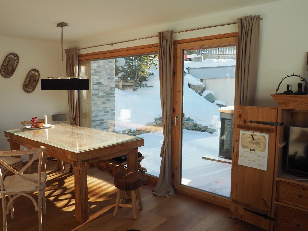 Inside, a sophisticated blend of comfort and style awaits you. Two bedrooms with double beds or two single beds and fitted wardrobes ensure restful nights. The two modern bathrooms with comfortable showers complete the picture. The open-plan kitchen is equipped with every conceivable modern convenience - from oven/steamer to induction hob, dishwasher, large fridge with ice compartment, Nespresso machine, kettle, toaster, raclette grill and fondue set. The living and dining area, with direct access to the south-facing terrace, invites you to linger and is well equipped with a flatscreen TV, Swisscom TV, a Sonos system, board games and books, among other things.