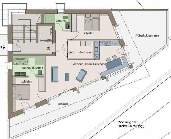 There are four spacious flats in the Chesa a la Punt: three flats for 4 people (2 bedrooms) and one flat for two people (1 bedroom). All bedrooms have their own bathroom with bath/shower.