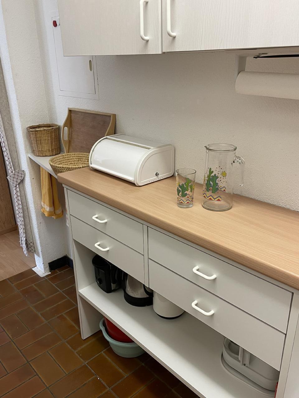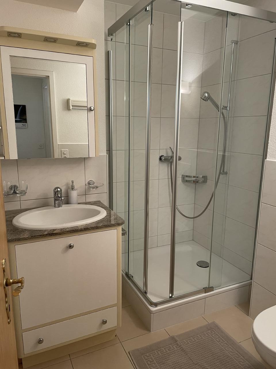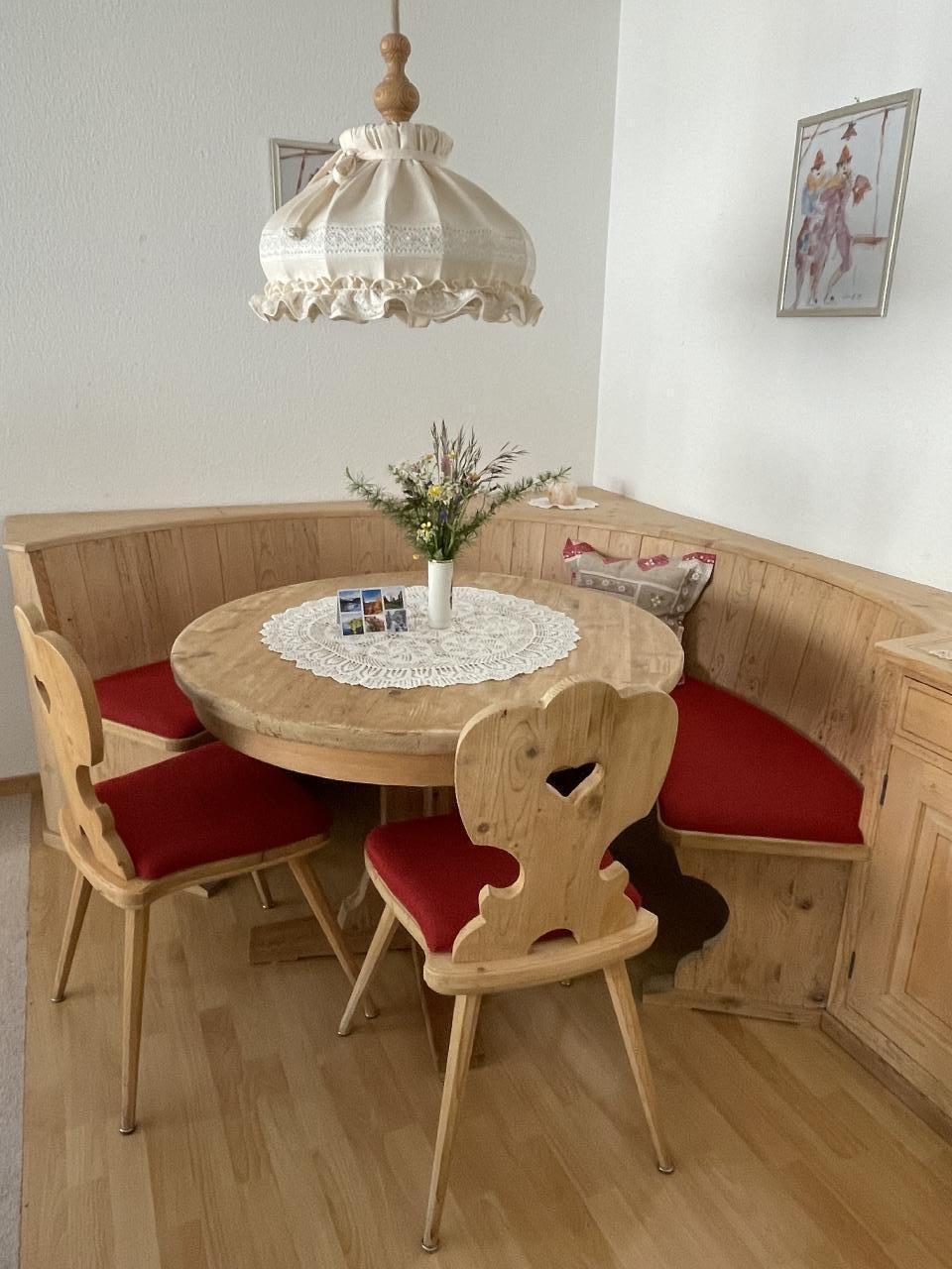 The equipment of the individual rooms are: Kitchen: stove with 3 hotplates, fridge with small freezer, microwave, toaster, eletric kettle, coffee machine filter or capsules Nespresso, raclette oven, fondue set (cheese or chinoise) Living room: sofa, TV, W-LAN, radio, round table with corner bench. Bedroom: two single beds, which can be used as a double bed or as two single beds, two bedside tables with bedside lamps, closet, chest of drawers and a large mirror. Bathroom: toilet, washbasin with mirror, shower, hairdryer. Entrance area: wardrobe, cleaning cupboard (cleaning materials, vacuum cleaner, iron, ironing board). On request extra bed in the living room possible. Communal laundry room. Reserved parking space. Private mailbox. Dogs allowed, other pets on request. Smoking allowed on the balcony.