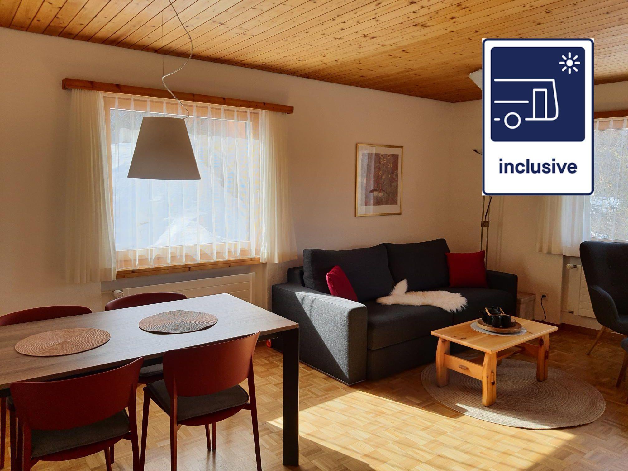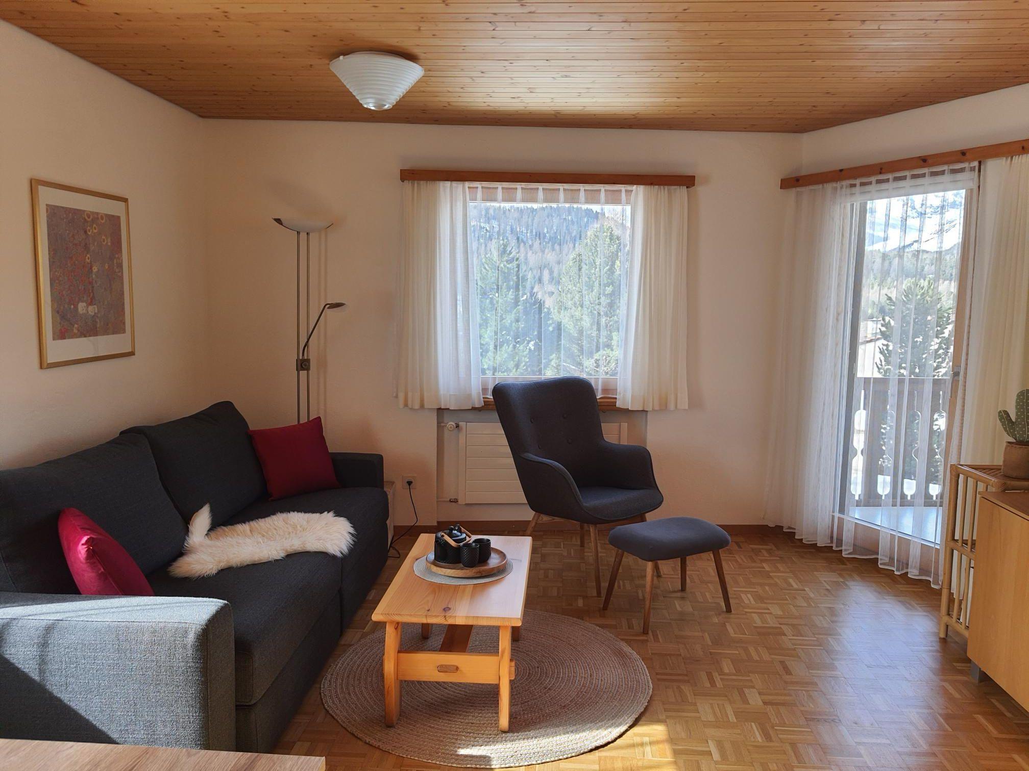 Beautiful, bright 2 1/2 room flat (approx. 50m2 for 2 persons) on the mezzanine floor, particularly quiet, slightly sloping location in the Muragls district.
