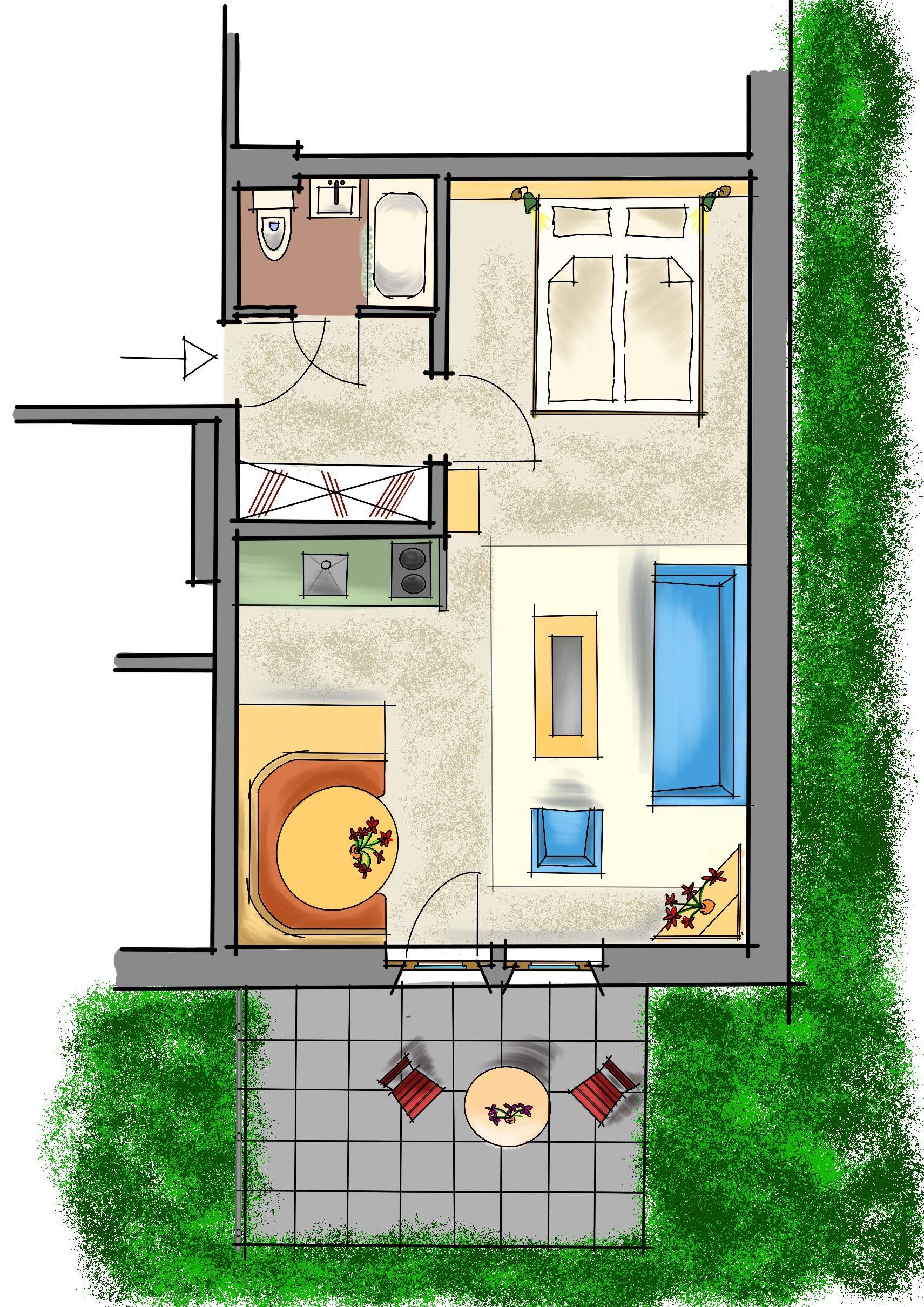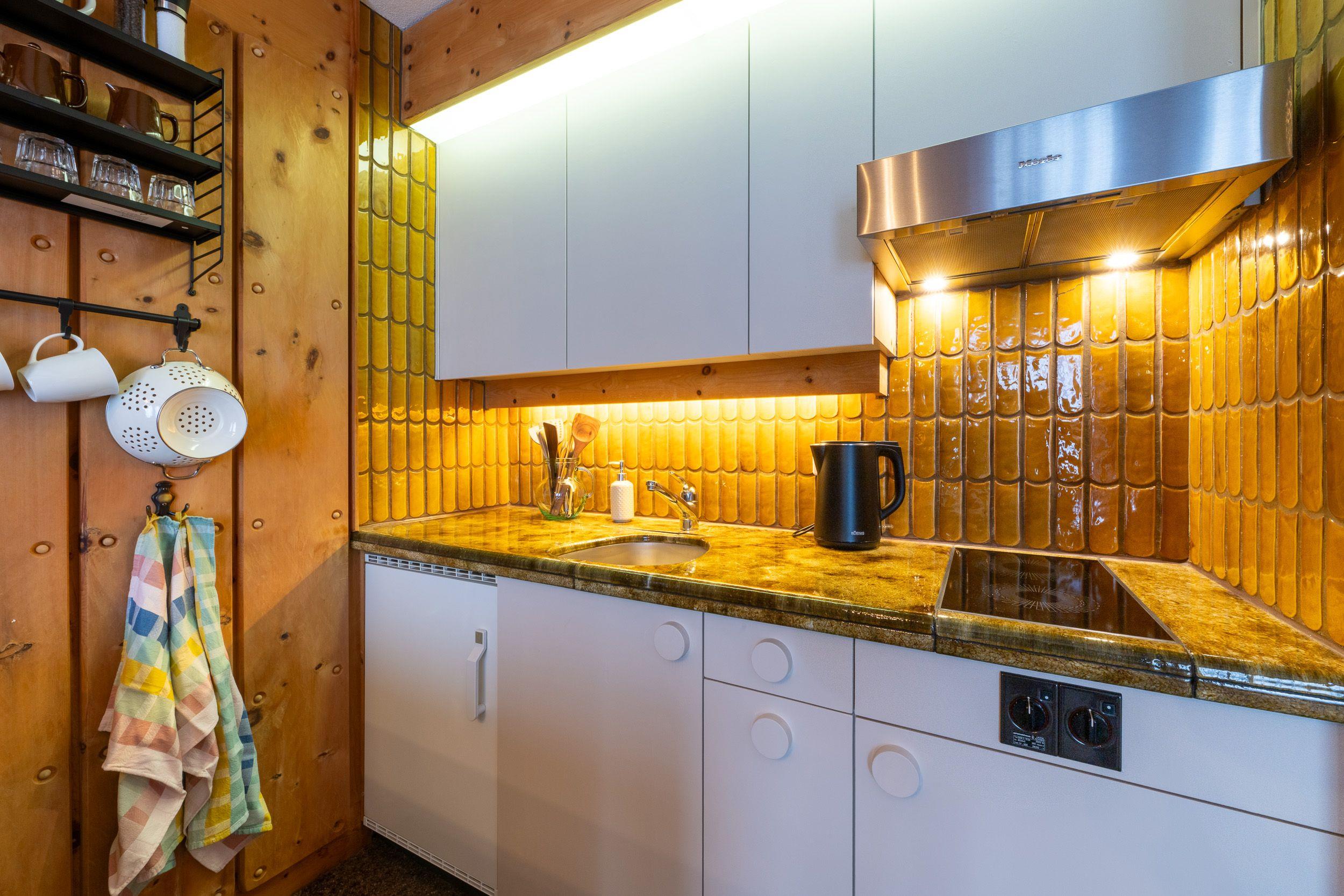 The Studio Flüme has its very own charm. Please note that this is a kitchenette without dishwasher and oven. However, an Airfryer offers an uncomplicated alternative to the oven. The kitchen will be equipped with new crockery and kitchen utensils this autumn.
