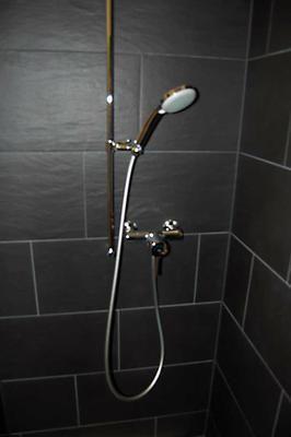 The bedroom has a double bed (1.60 m, two medium/firm mattresses), two duvets and a large wardrobe with plenty of storage space. The bathroom impresses with a spacious, walk-in and barrier-free shower.