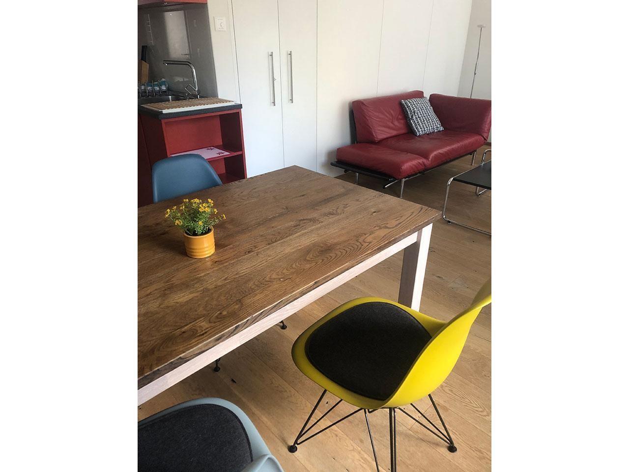 The open-plan kitchen is fully and very well equipped - including a Nespresso machine, Italian espresso machine (Bialetti), filter coffee machine, toaster, hand blender and fondue rechaud - and offers space to eat and linger at an oak table with four comfortable chairs. Nespresso capsules can be purchased from the nearby Coop.