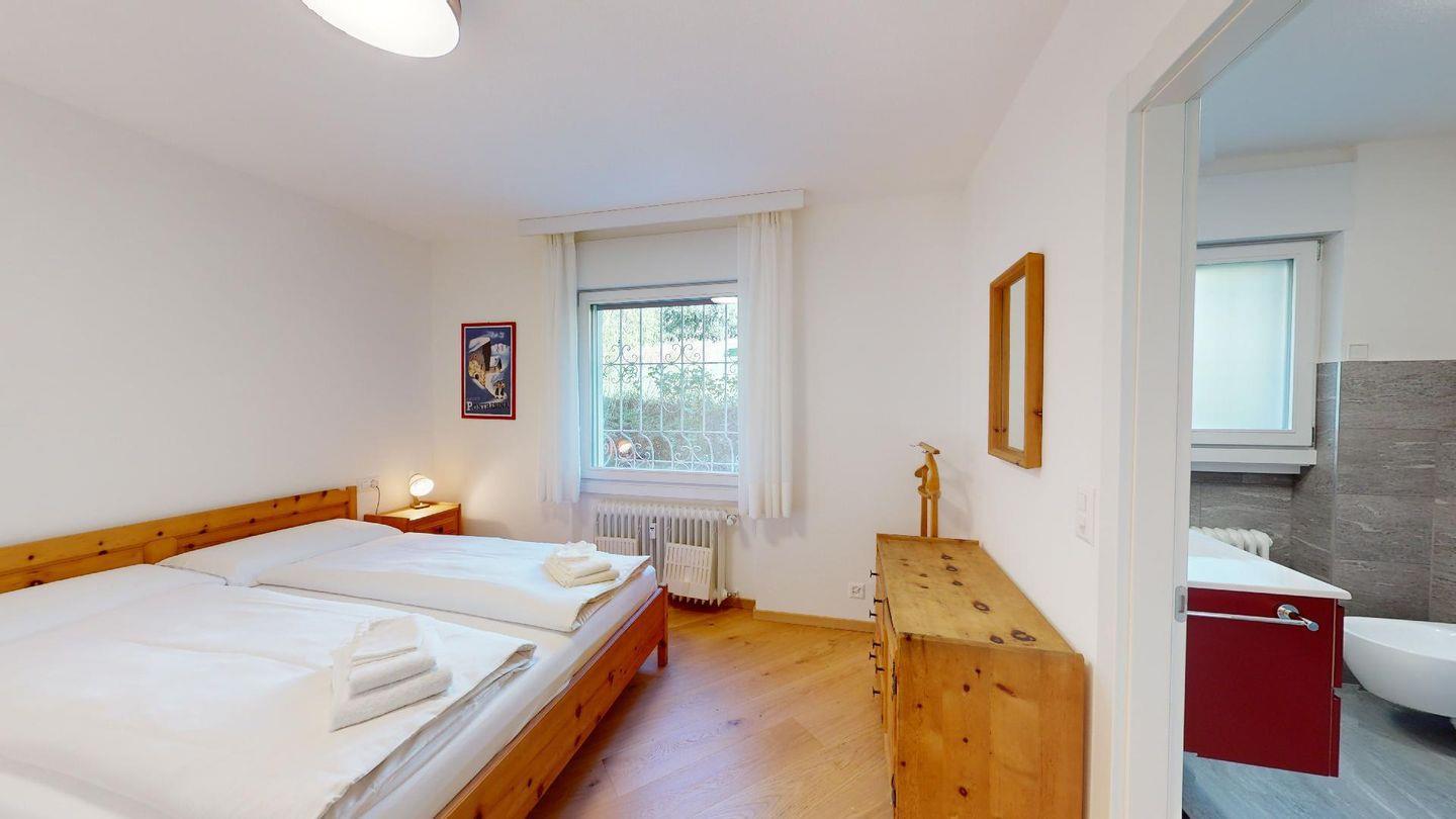 Die Wohnung verfügt über zwei Schlafzimmer mit komfortablen Doppelbetten. Besonders hervorzuheben ist das Hauptschlafzimmer, das über ein eigenes en Suite Badezimmer verfügt und somit zusätzlichen Komfort und Privatsphäre bietet. Ein zweites modernes Badezimmer mit Dusche ergänzt das Raumangebot ideal – ideal für Familien oder befreundete Paare. Ein privater Garagenplatz steht den Gästen zur Verfügung. (Grösse: 2.35 Breite x 2.00 Höhe).
