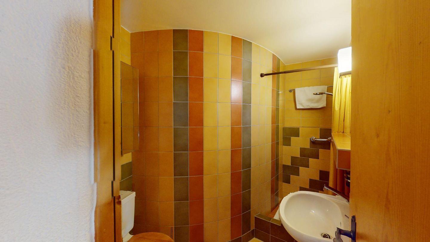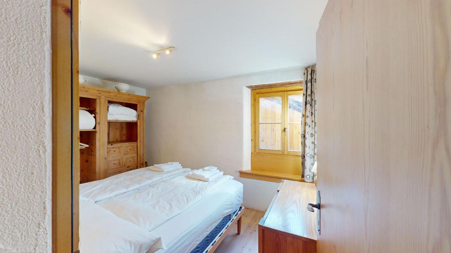 Im ersten Stock verfügt die Wohnung über ein Wohn- und Essbereich, welcher mit viel Holz ausgestattet ist und dadurch eine warme und einladende Atmosphäre verbreitet. Ebenfalls befinden sich auf der ersten Etage ein Schlafzimmer mit einem Doppelbett und ein Badezimmer mit Dusche. Im teilweise abgeschrägten Dachgeschoss befinden sich ein weiteres Badezimmer mit Badewanne und ein Schlafzimmer ebenfalls mit Doppelbett. Die Dachterrasse ist vom oberen Geschoss zugänglich und diese bietet eine atemberaubende Aussicht auf die umliegenden Berge. Im Dachgeschoss gibt es zusätzlich einen offenen Raum, der als Kinderspielzimmer geeignet ist.