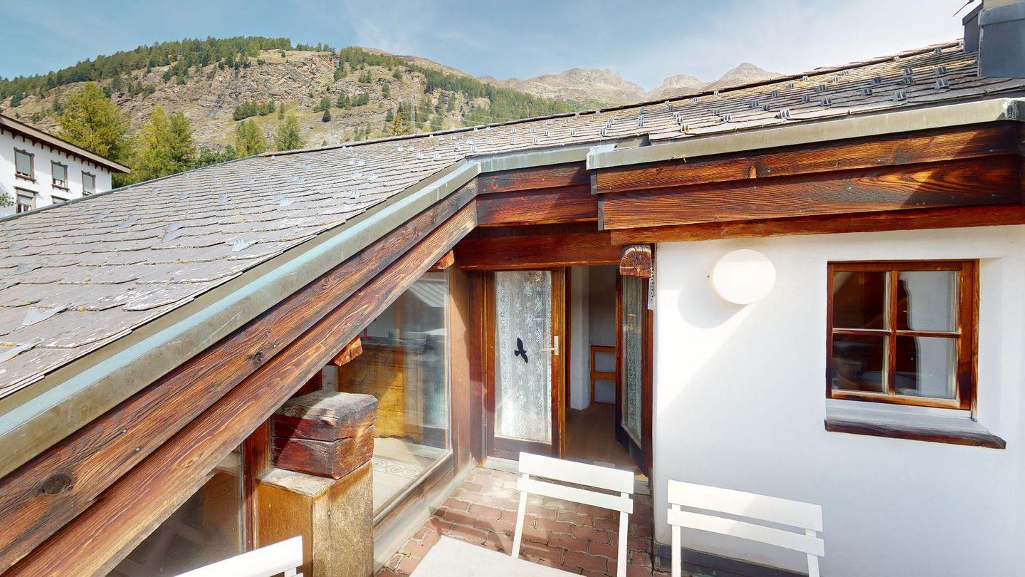 3.5 Zimmer-Dachwohnung im dritten Stock eines Engadinerhauses. Die Wohnung ist auf zwei Stockwerken und befindet sich an ruhiger und zentraler Lage in Pontresina.
