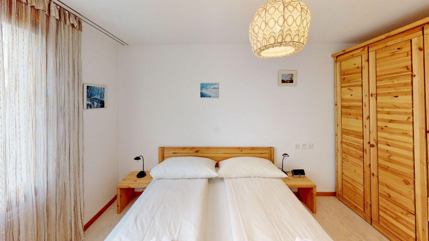 Die zweckmässige Wohnung hat ein Wohnzimmer mit Sofa und Fernseher sowie eine Eckbank mit Esstisch. Nebenan finden Sie die geschlossene und komplett ausgestattete Küche. Die Wohnung verfügt über ein Schlafzimmer mit Doppelbett sowie ein Badezimmer mit Badewanne. Im Wohnzimmer steht ein Sofabett zur Verfügung, welches für Kinder geeignet ist. Die Wohnung befindet sich im Erdgeschoss eines Mehrfamilienhauses. Zu den öffentlich zugänglichen Räumen zählen eine Waschküche mit Trockner, sowie einen Velo- und Skiraum. Ein Garagenparkplatz ist inbegriffen (Achtung: der Garagenparkplatz kann nicht mit grösseren Fahrzeugen wie SUV's genutzt werden, auch tiefergelegte Autos wie Audi S4, 3er BMW eignen sich nicht für den Platz).