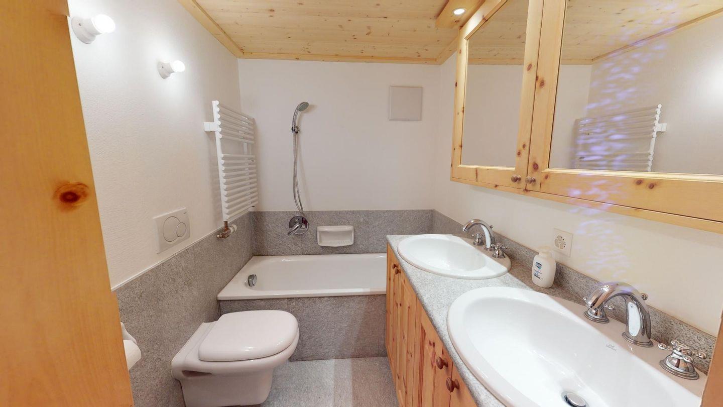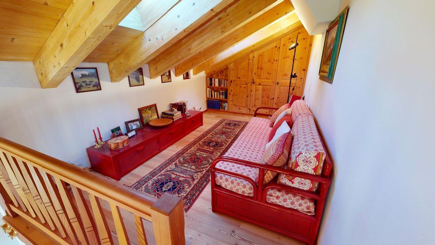 Gemütliche 4.5 Zimmer Ferienwohnung im Dachgeschoss mit Galerie. Helles Wohn- /Esszimmer mit grossem Balkon mit wunderschöner Aussicht auf Pontresina und die Bergwelt des Oberengadins. Geschlossene Küche mit durchreiche. Kamin. 1 Doppelschlafzimmer mit ensuite Badezimmer, Dusche/WC. 1 Doppelschlafzimmer, separates Badezimmer mit Badewanne/Dusche/WC. 1 Einzelschlafzimmer mit separater Dusche/WC. Galerie mit gemütlicher Sofaecke. 2 Garagenplätze.