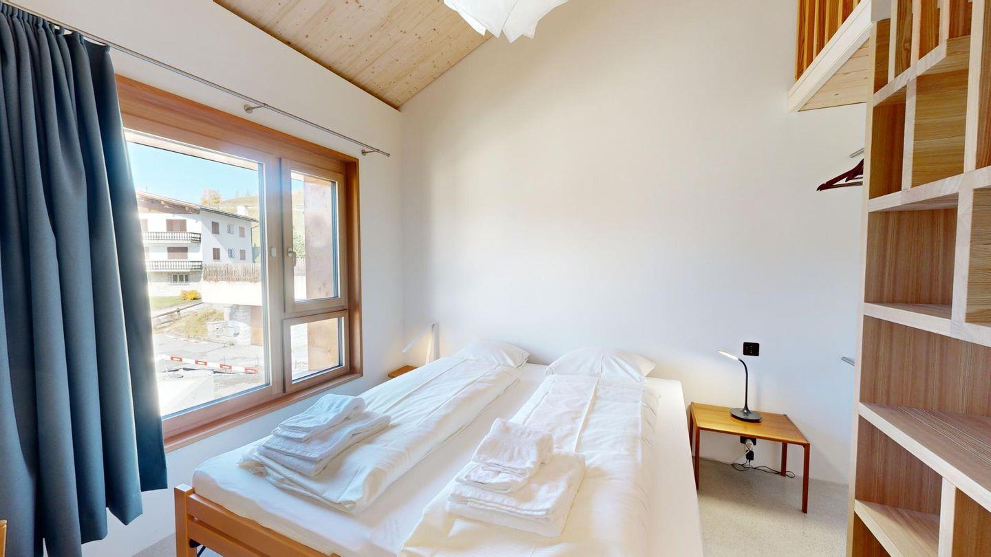 Die Ferienwohnung verfügt über ein grosszügiges Wohn-Esszimmer mit einem gemütlichen Schwedenofen und direkten Zugang zu einem überdachten Balkon, der dazu einlädt, die frische Bergluft und die spektakuläre Aussicht zu geniessen. Zwei komfortable Schlafzimmer, eines davon mit einer charmanten Galerie, bieten Platz für bis zu sechs Personen. Die luxuriös ausgestatteten Badezimmer garantieren höchsten Komfort, und die voll ausgestattete Küche mit Blick auf den imposanten Julier Gipfel lässt keine Wünsche offen. Gegen Aufpreis können Sie den Spa-Bereich nutzen – für ein rundum entspanntes Urlaubserlebnis.
