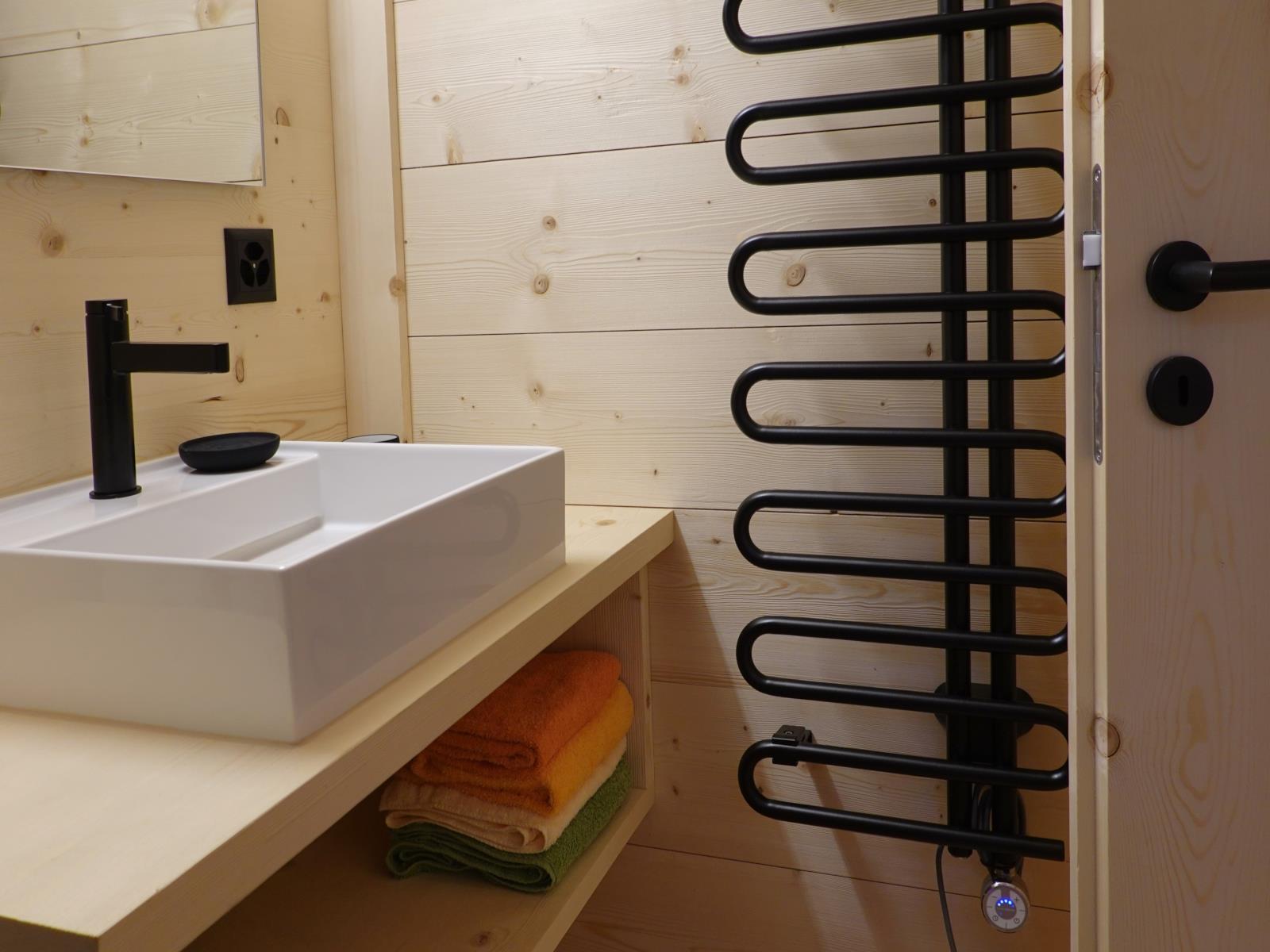 Im kleinen Badezimmer finden sie Dusche/WC/Lavabo und ein Handtuchradiator. Die Frotteewäsche ist vorhanden und im Preis inbegriffen.