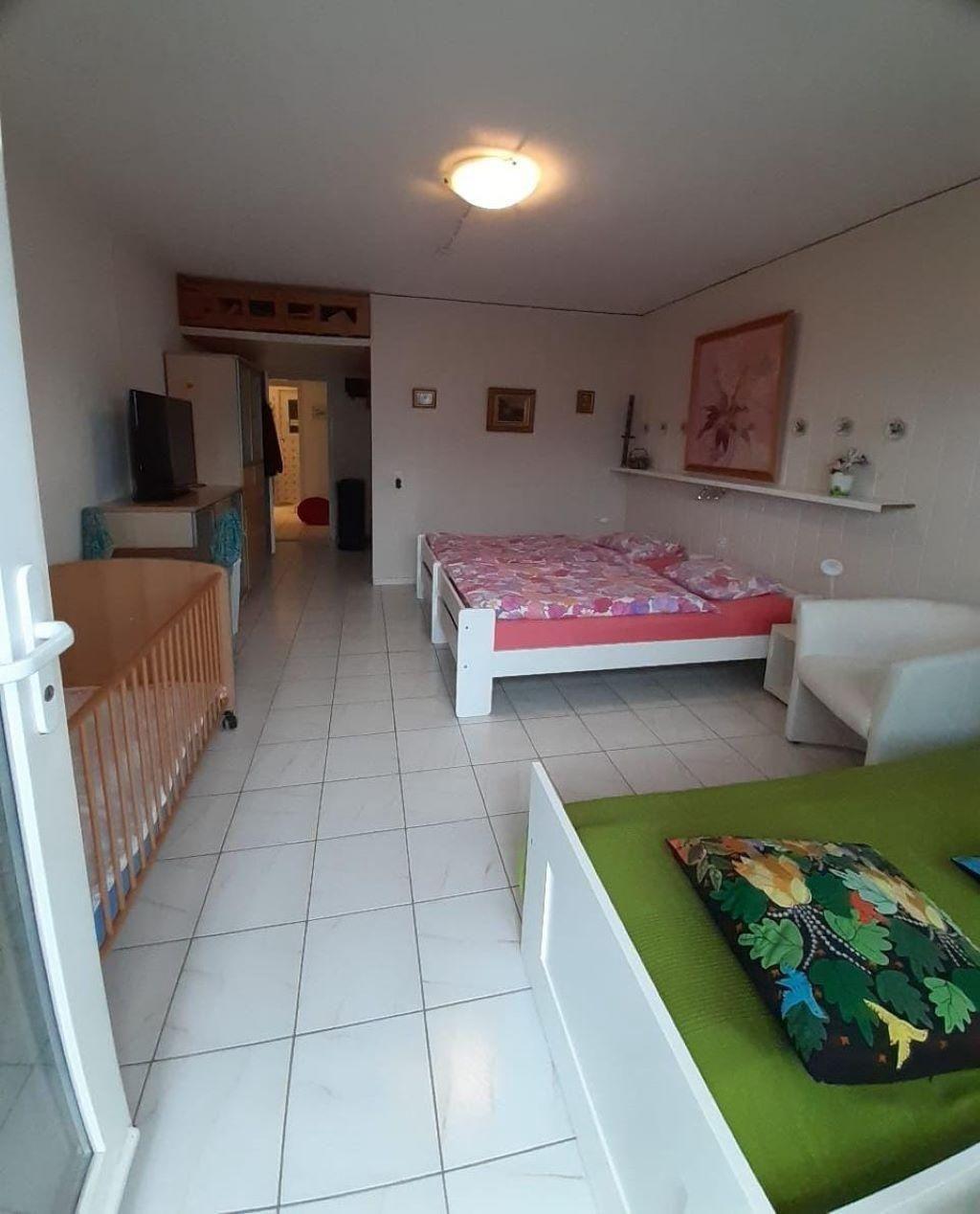 The flat offers a cosy living room with sofa, TV and a separate dining area, which invites you to linger together. Two bedrooms, each equipped with two beds, offer restful nights. A cot is available for the youngest guests. In the well-equipped kitchen with dishwasher, fridge with freezer compartment, oven and electric hob, you can easily prepare meals for the whole family.