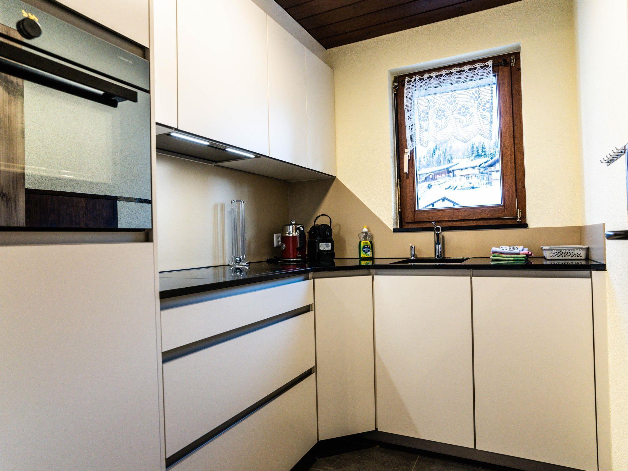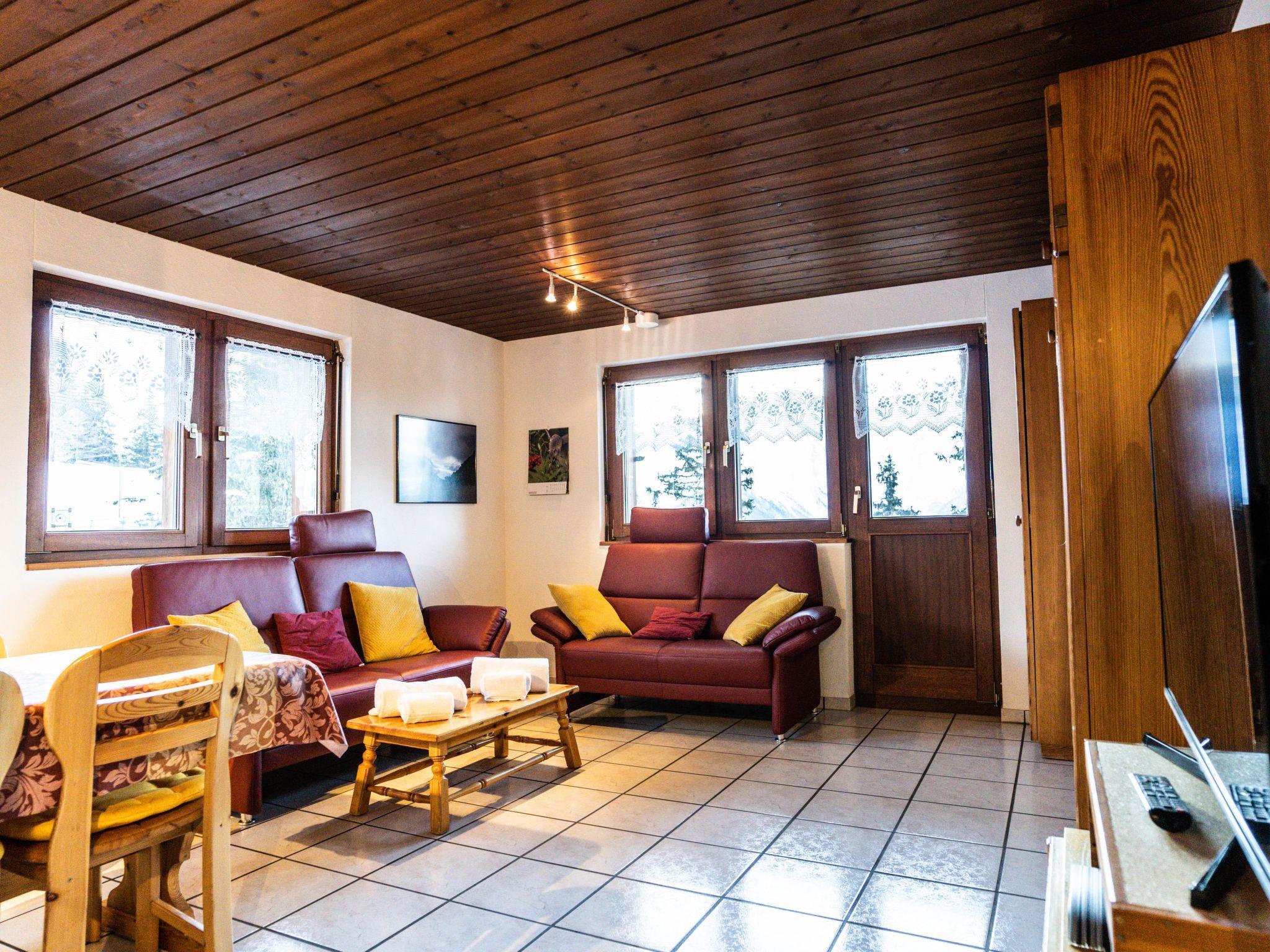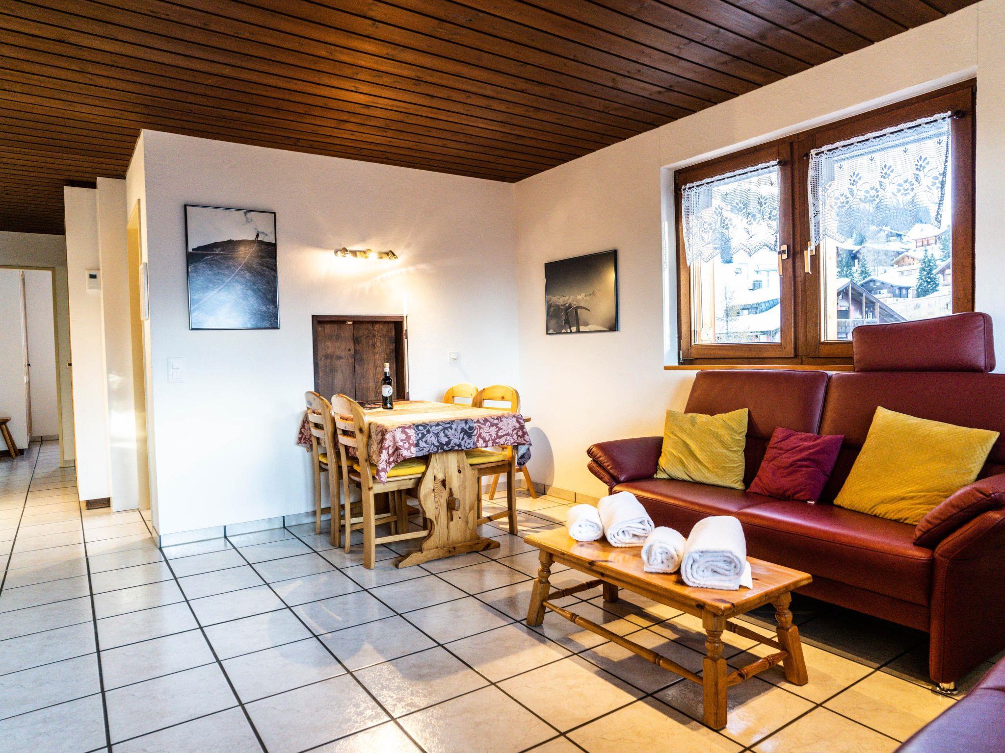 The 2 1/2-room apartments in the Sportina house offer space for 1 to 4 people and are comfortably and modernly equipped. The furnishings include a bedroom with a double bed, a living room with a dining table and two sofa beds, as well as a bathroom with a shower and toilet. The kitchen is equipped with a dishwasher, Nespresso coffee machine and all necessary cooking utensils. Underfloor heating provides pleasant warmth. A TV and free Wi-Fi are available. All apartments have a south-facing balcony with a view of the Walliser Alps, some also have an east-facing balcony. The building offers an elevator, a ski storage room with a boot dryer, as well as a communal laundry room.