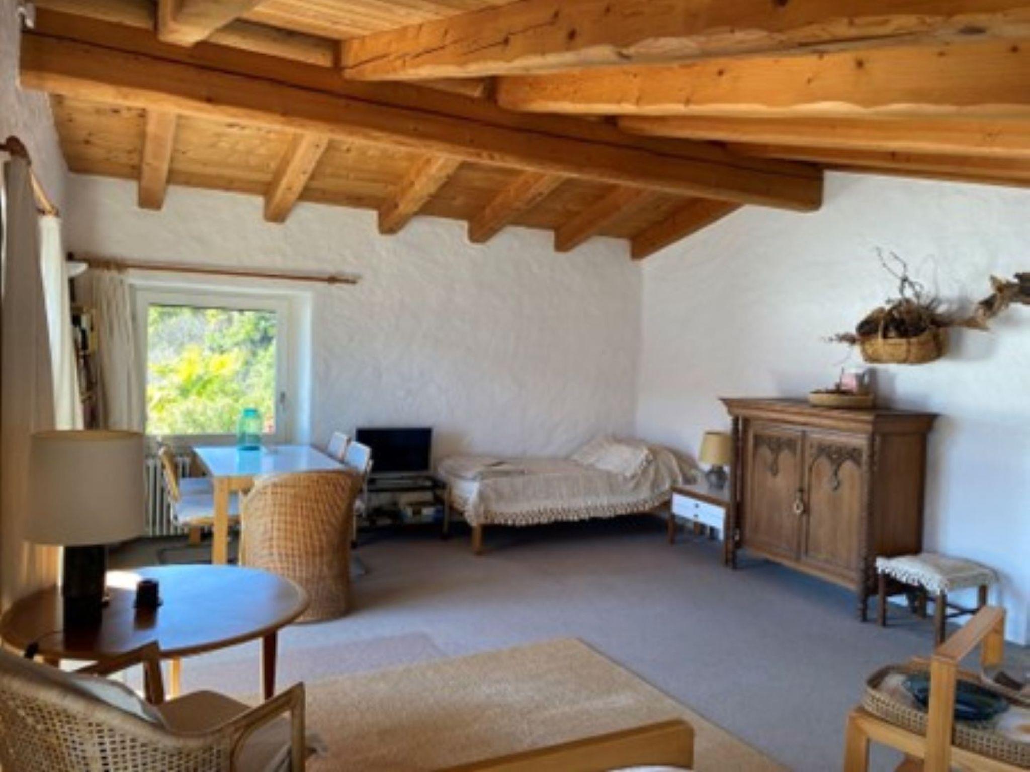 Welcome to this enchanting 1.5-room holiday flat for two people in a typical Ticino house in Ronco sopra Ascona. The bright, spacious living room/bedroom is the centrepiece of the flat and invites you to relax. Here you will find two separate beds (90 cm and 120 cm), a cosy dining area for four people, a well-stocked bookshelf, TV and WLAN - ideal conditions for relaxing hours.