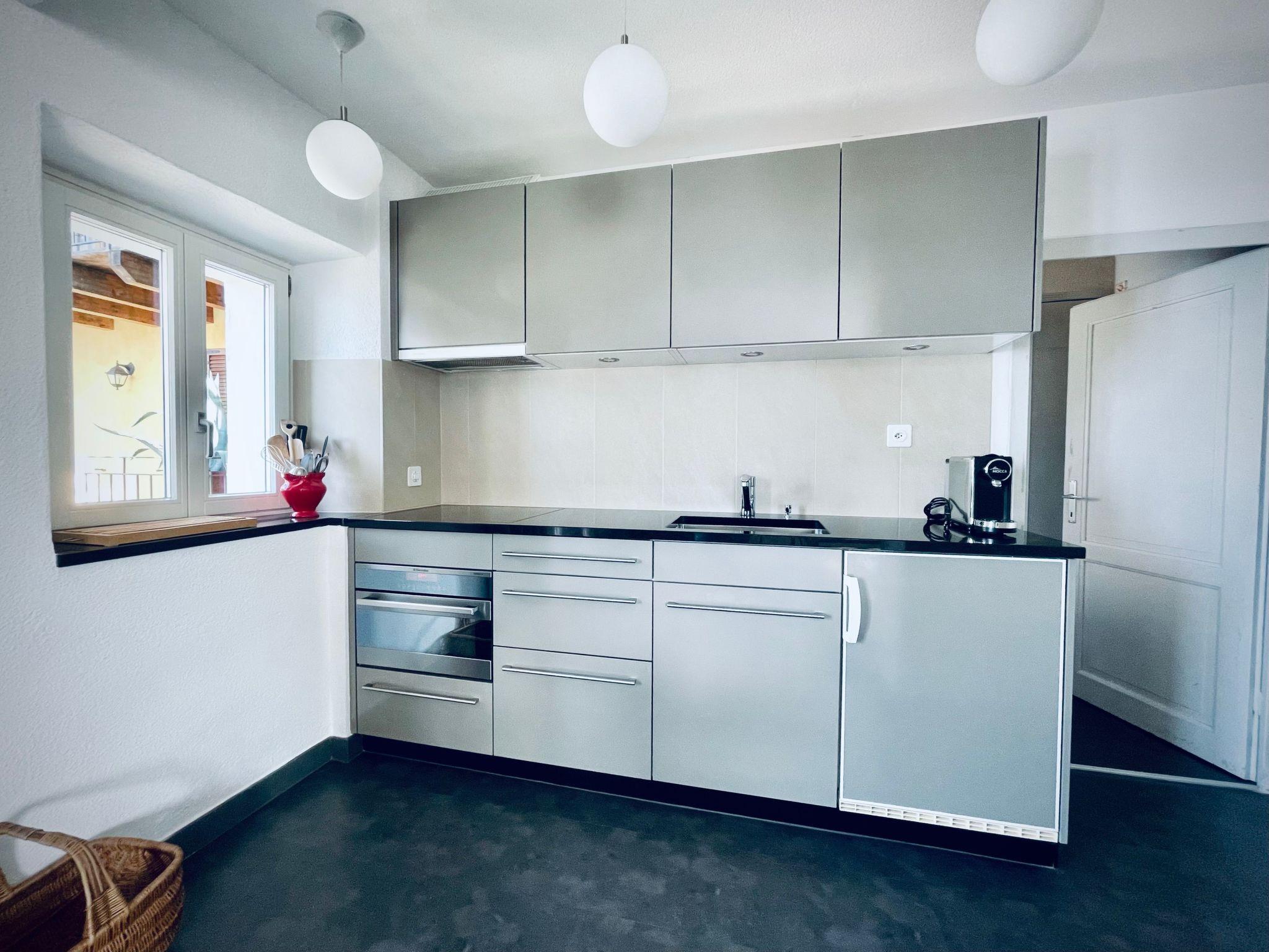 In the Casa Beatrice there are 3 apartments. GF: private; 1st floor: fix rented; 2nd and 3rd floor: holiday apartment. 2 floors apartment with 3 rooms in Ronco s/Ascona with marvellous view on the Lake Maggiore and Brissago Islands. Central, quiet and sunny position. With small terrace. Access to the house: stairs of approx. 3 meters.Holiday apartment with 3 rooms (approx. 75m2) on 2 floors. 1st floor: open kitchen with dining table, small sitting corner, cable TV/radio/telephone; ; small balcony with lake view. 1 double room; shower with WC. 2nd floor: living-bedroom with a king size bed, The stair to the 1st floor is steep, the house is not suitable for small children and people with mobility problems. Max. occupancy 4 people.