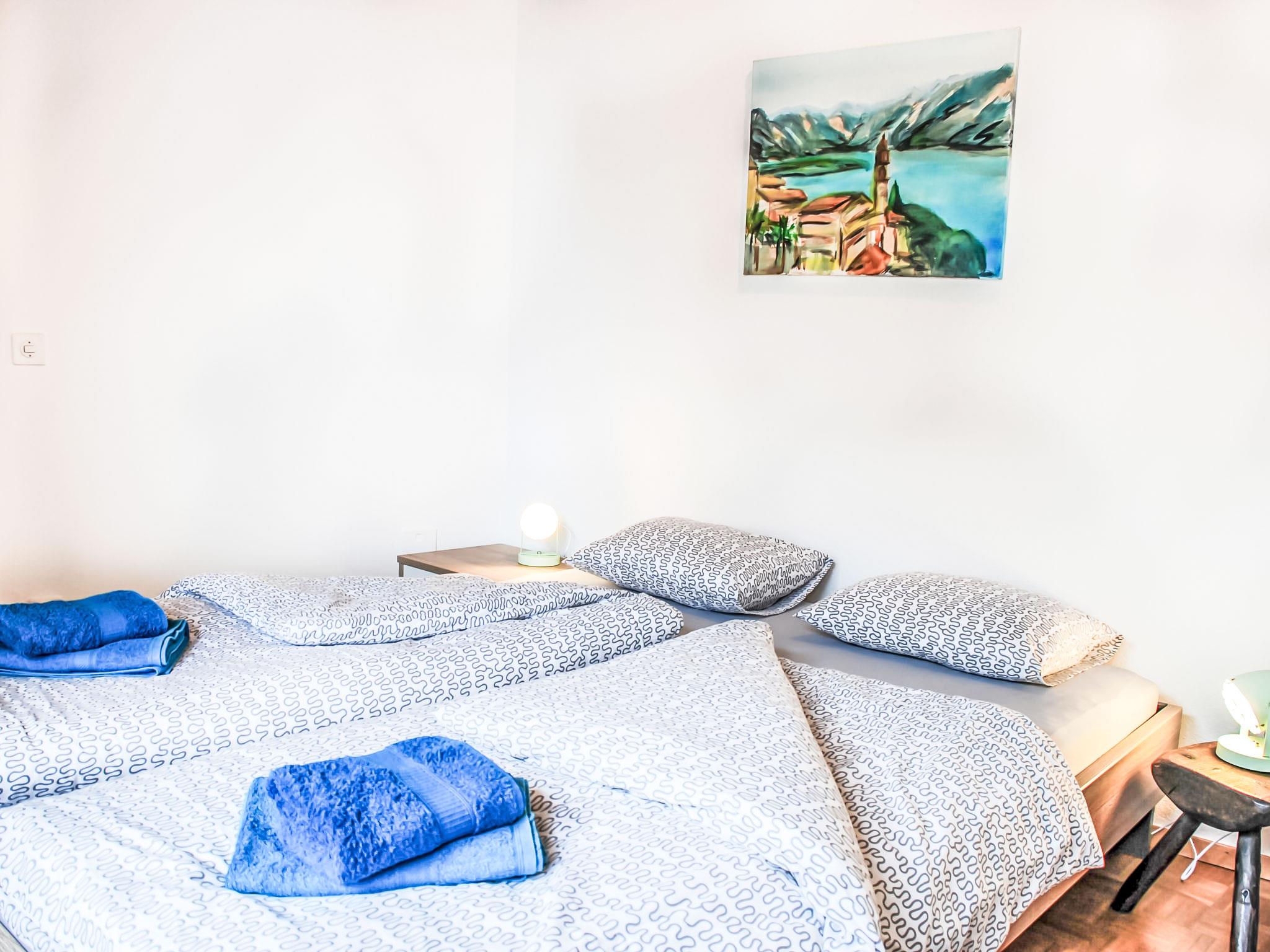 "Casa Eduardo Apt.2", 3-room apartment 75 m2 on 1st floor, south-east facing position. Spacious and bright, renovated in 2018, comfortable and cosy furnishings: open living/dining room with dining table, cable TV, international TV channels, flat screen, radio and hi-fi system. Exit to the terrace. 1 double bedroom with 1 double bed (2 x 90 cm, length 200 cm). 1 double bedroom with 1 double bed (2 x 80 cm, length 200 cm). Kitchen (oven, dishwasher, 4 ceramic glass hob hotplates, electric coffee machine, Capsules for coffee machine (Nespresso) extra). Shower/WC. Electric heating. Terrace 12 m2 partly roofed, south facing position. Terrace furniture. Very beautiful panoramic view of the lake, the mountains and the countryside. Facilities: washing machine, children's high chair, baby cot for up to 3 year olds (extra), hair dryer. Internet (WiFi, free). Please note: suitable for families. Non-smokers only. Fire extinguisher, no lift. NL-00003745