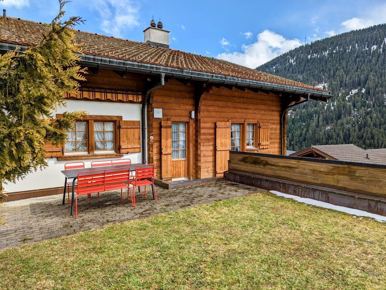- Terrace with garden furniture and sunbathing lawn with a fantastic and sunny mountain view