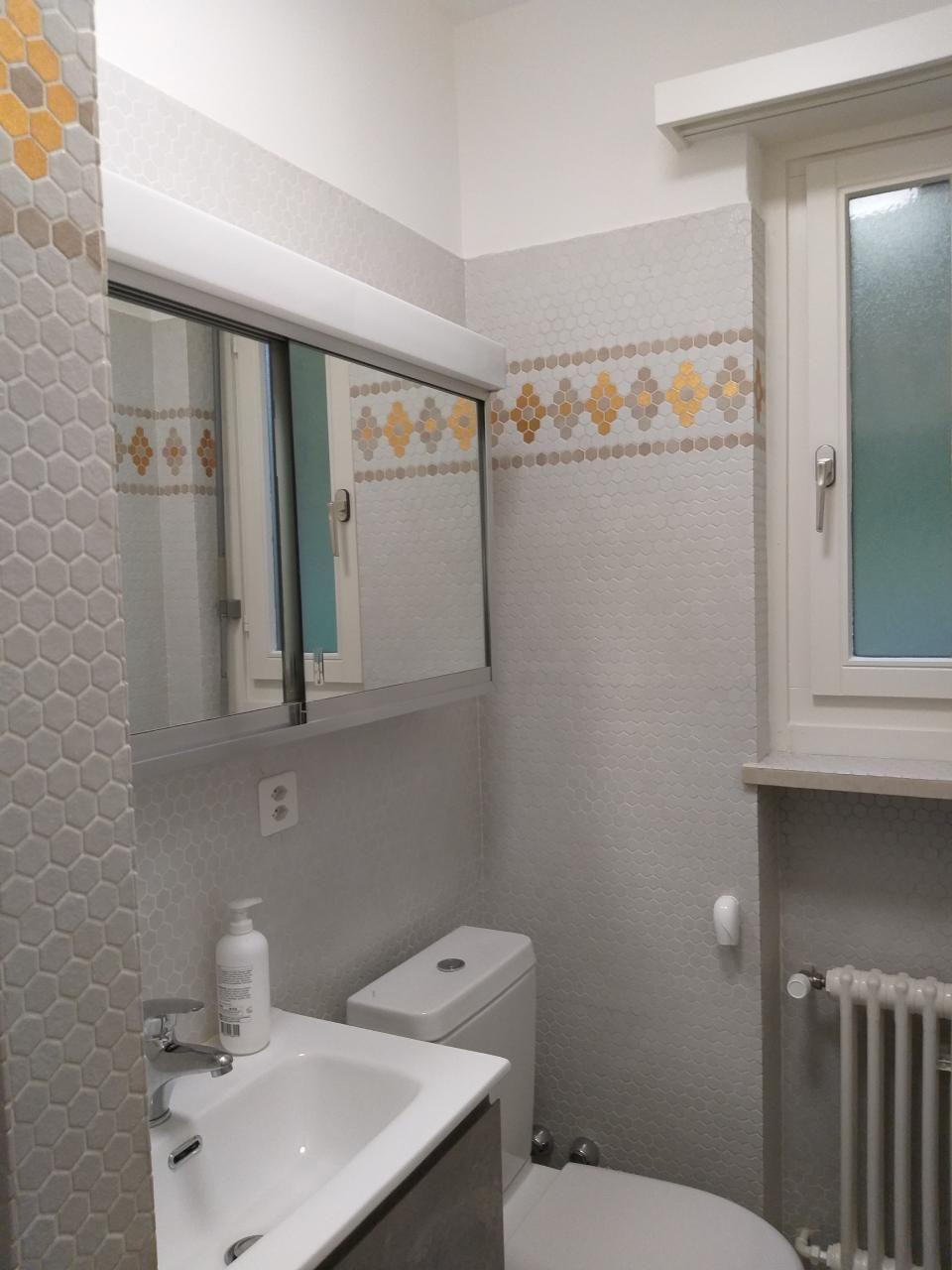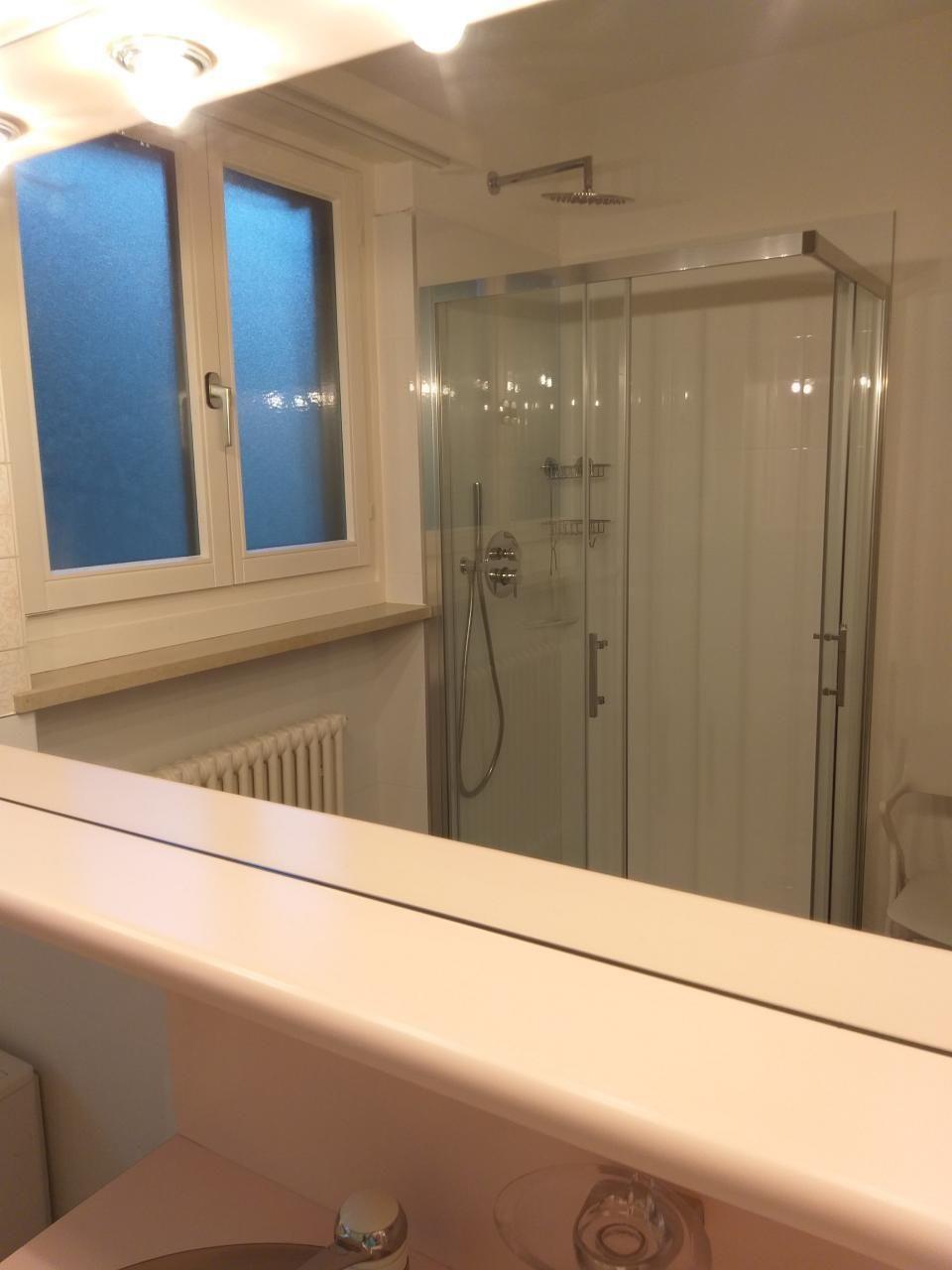 1) In addition to the bathroom with shower, WC, washbasin, large mirror and plenty of storage space, the "Appartamento d'oro" also has a separate room with a second WC, washbasin and mirror cabinet, which our previous guests have greatly appreciated.