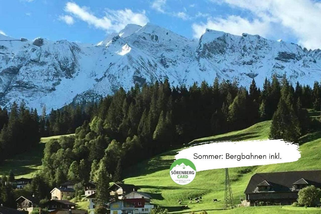 The 3-star 3-1/2 room flat is wheelchair accessible and child-friendly. The stylishly furnished holiday flat is located on the sunny slope of Sörenberg. Ski slopes, mountain railways, restaurants, shopping facilities, playgrounds and the indoor swimming pool are all within 5 - 10 minutes walking distance. Two separate bedrooms, well-equipped kitchen, cosy living room, bathroom with WC shower, garden seating area and a covered parking space are available in our Baldo holiday flat, as well as radio, cable TV HD and WLAN. New in the holiday flat Baldo. SÖRENBERG CARD = mountain railways included in summer