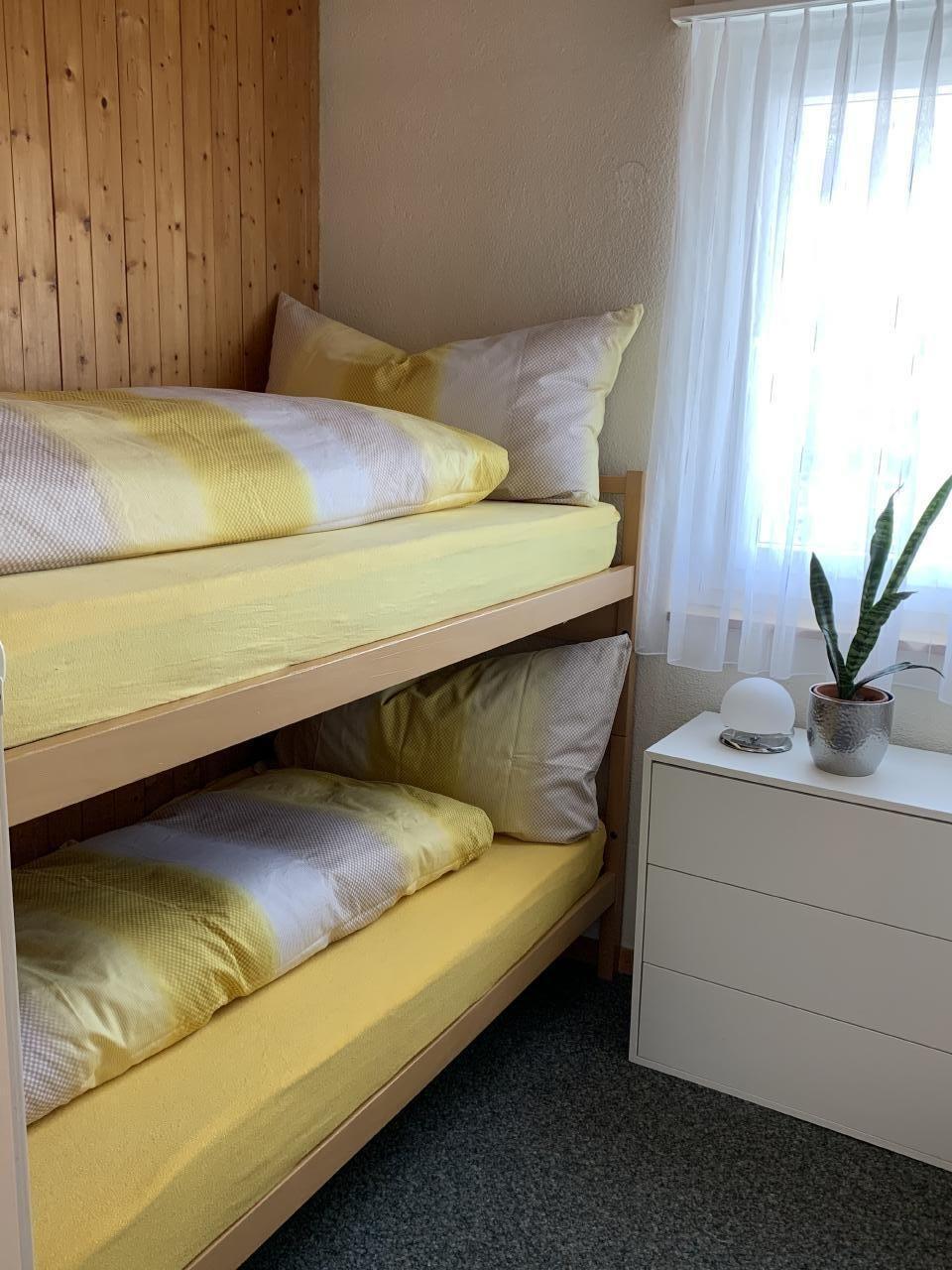 Our house, which comprises two holiday flats, is situated in a sunny and quiet location on the edge of the village of Sörenberg. Both flats are simple but well-kept and classified with 2 stars. This larger flat has three bedrooms, a cosy living/dining area and a separate kitchen and can accommodate up to 5 people. The two smaller bedrooms have folding doors. The entire house is ideal for two families of friends who want to spend their holidays together.