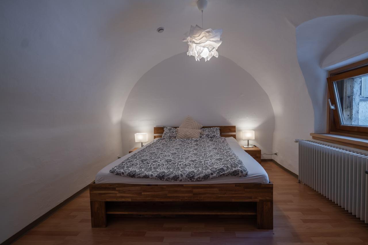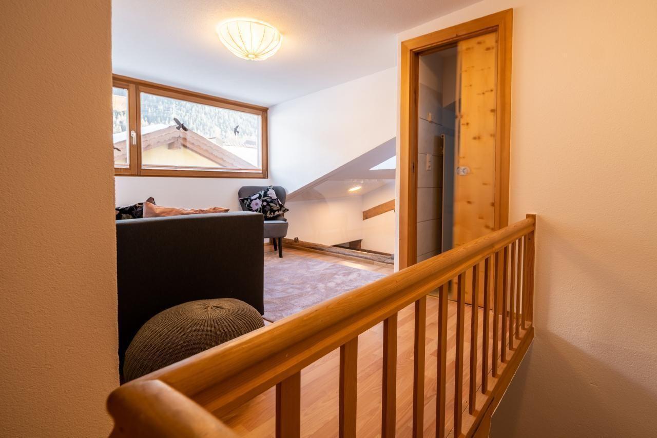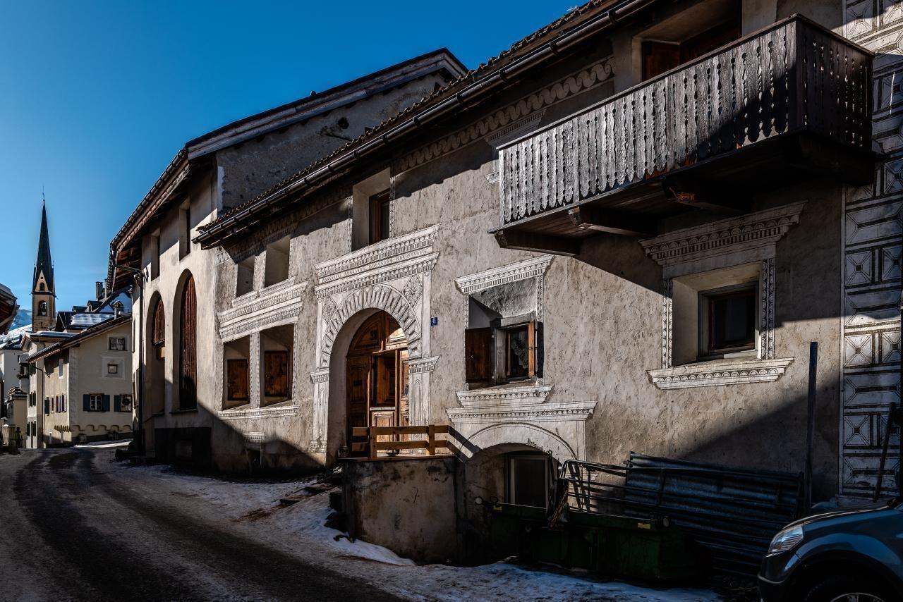 The beautiful historic property has been renovated into an absolute bijou over the last 12 years. The charming old building style with the rustic wooden beams perfectly complements the modern finish. The maisonette flat on the top floor, which is located in an authentic Engadine farmhouse from the 16th century, enchants with a huge living and dining room with an open gallery.