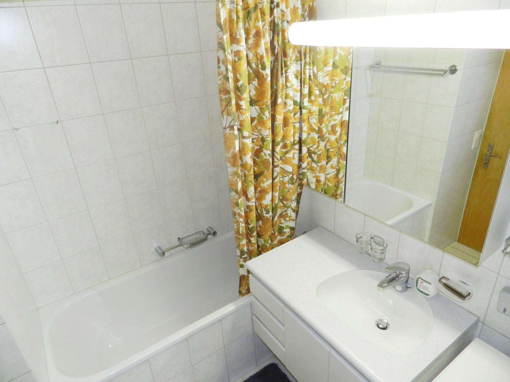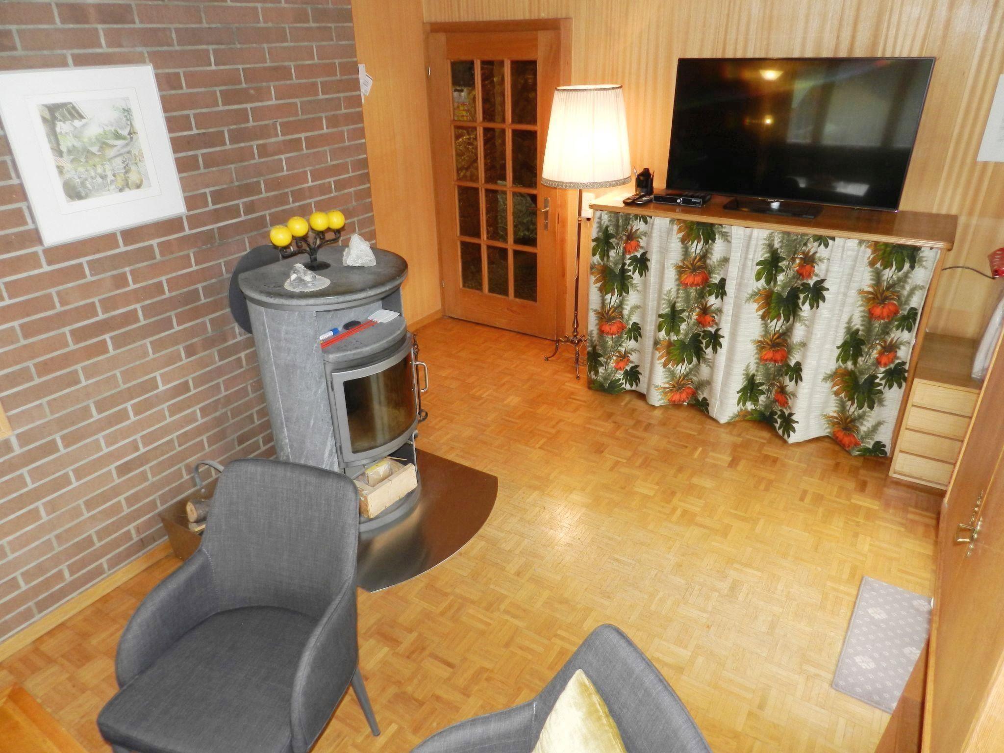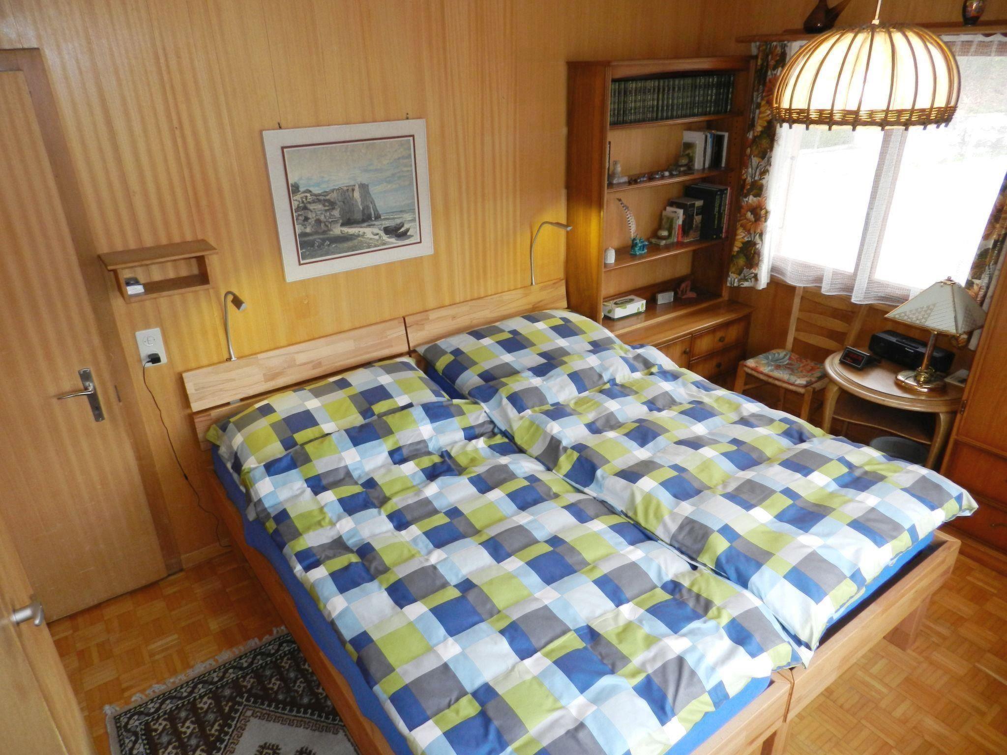 Living/dining room with sofa which converts into a conventional bed (140x200cm), swedish oven, TV, dining table and open-plan kitchen (equipped among other things with oven, dishwasher, refrigerator with freezer, coffee machine with capsules (Delizio) as well as fondue- and a raclette-set). 1 bedroom with 2 single beds pushed together (2x90x200cm). 1 bedroom with 2 single beds (each 90x190cm). 1 bathroom with bathtub/toilet and combined washing machine/tumble dryer. WiFi.