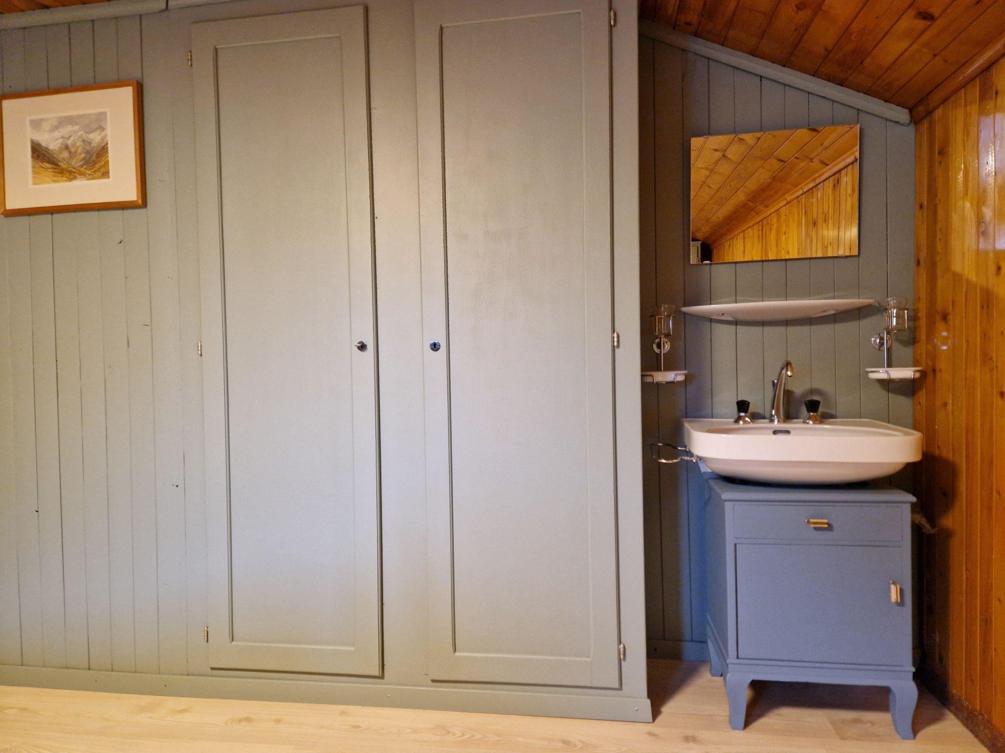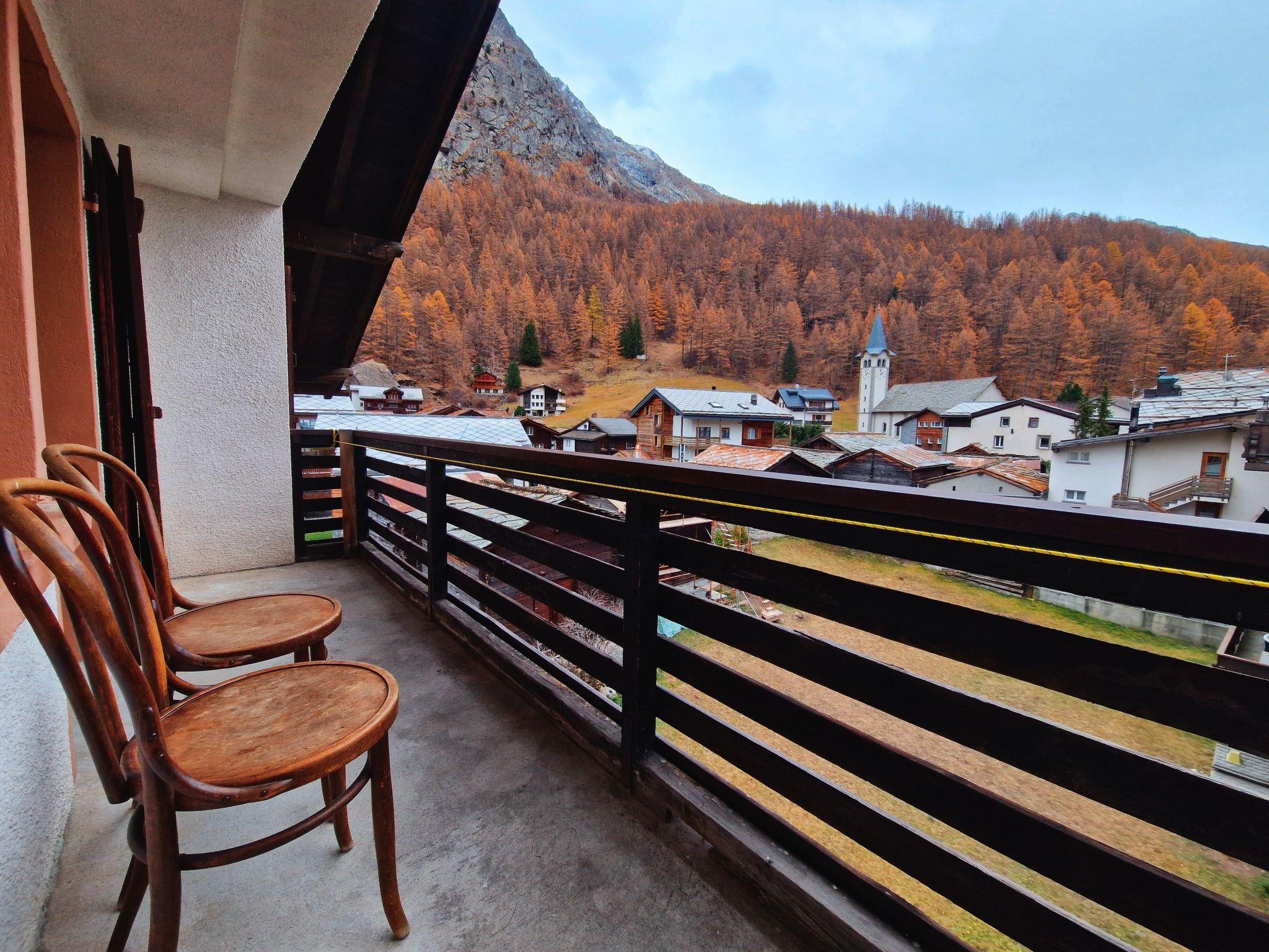 The spacious 4.5-room apartment (85 m²) with a sunny south-facing balcony offers plenty of space and comfort for a relaxing stay for up to 5 people. All 5 rooms are easily accessible via a generous hallway. 3 Separate Bedrooms: 2 bedrooms with double beds and a private washbasin, 1 bedroom with a single bed. Baby cot available on request. Living Room: Bright and cozy, with access to the south-facing balcony and a fantastic view across Saas Almagell stretching to the Monte Moro Pass and Mattmark Lake. Separate Kitchen: Completely renovated in 2025, it is modernly equipped with a refrigerator, dishwasher, coffee machine, as well as fondue and raclette sets. Bathroom: Well-maintained with shower/toilet. Extras: WLAN & TV, board games, books, SaastalCard (including free mountain lifts in summer), wellness offers at Hotel Pirmin Zurbriggen (100m away), Aqua Allalin in Saas Fee (3km away, also accessible on foot through the larch forest).