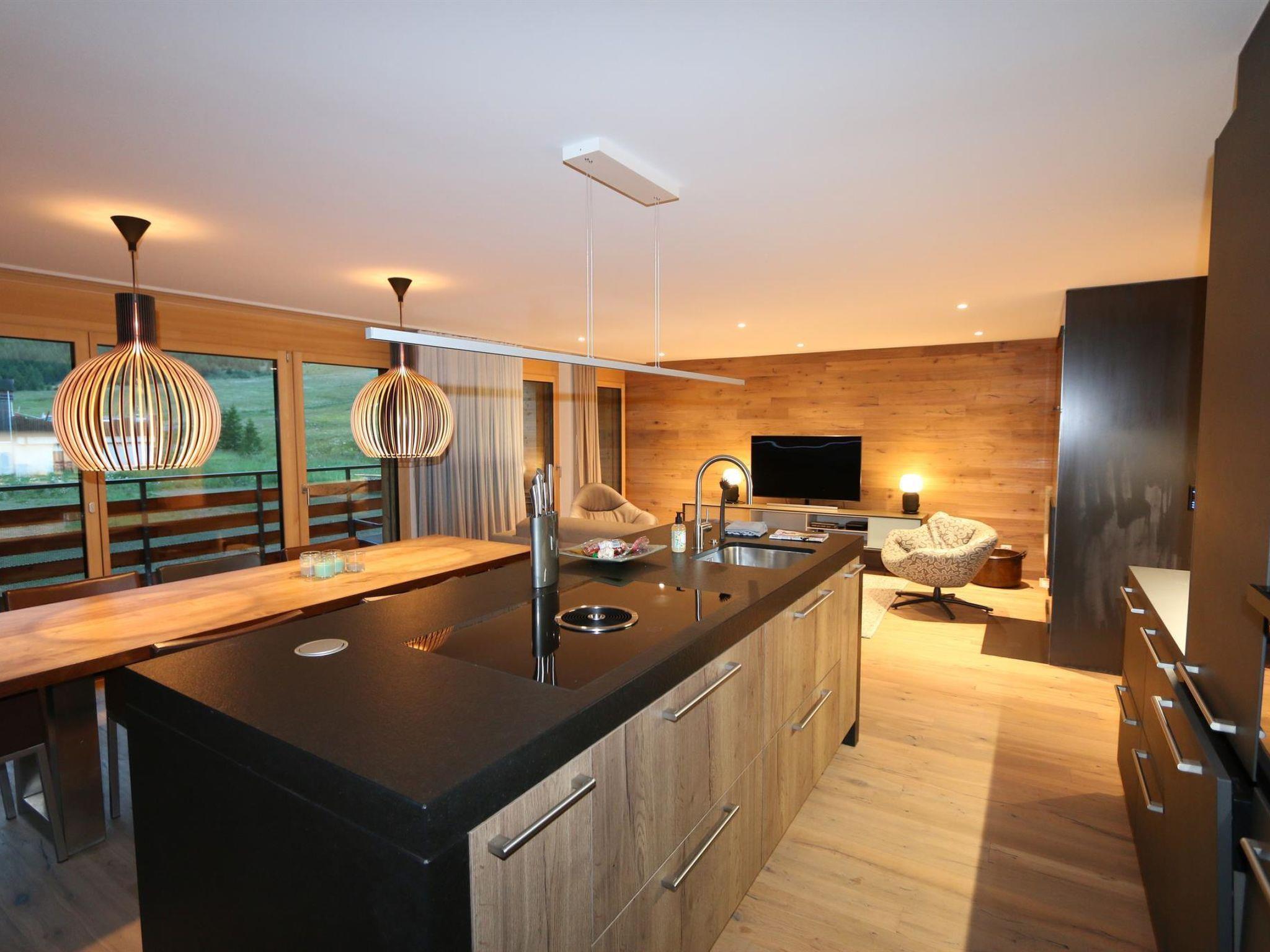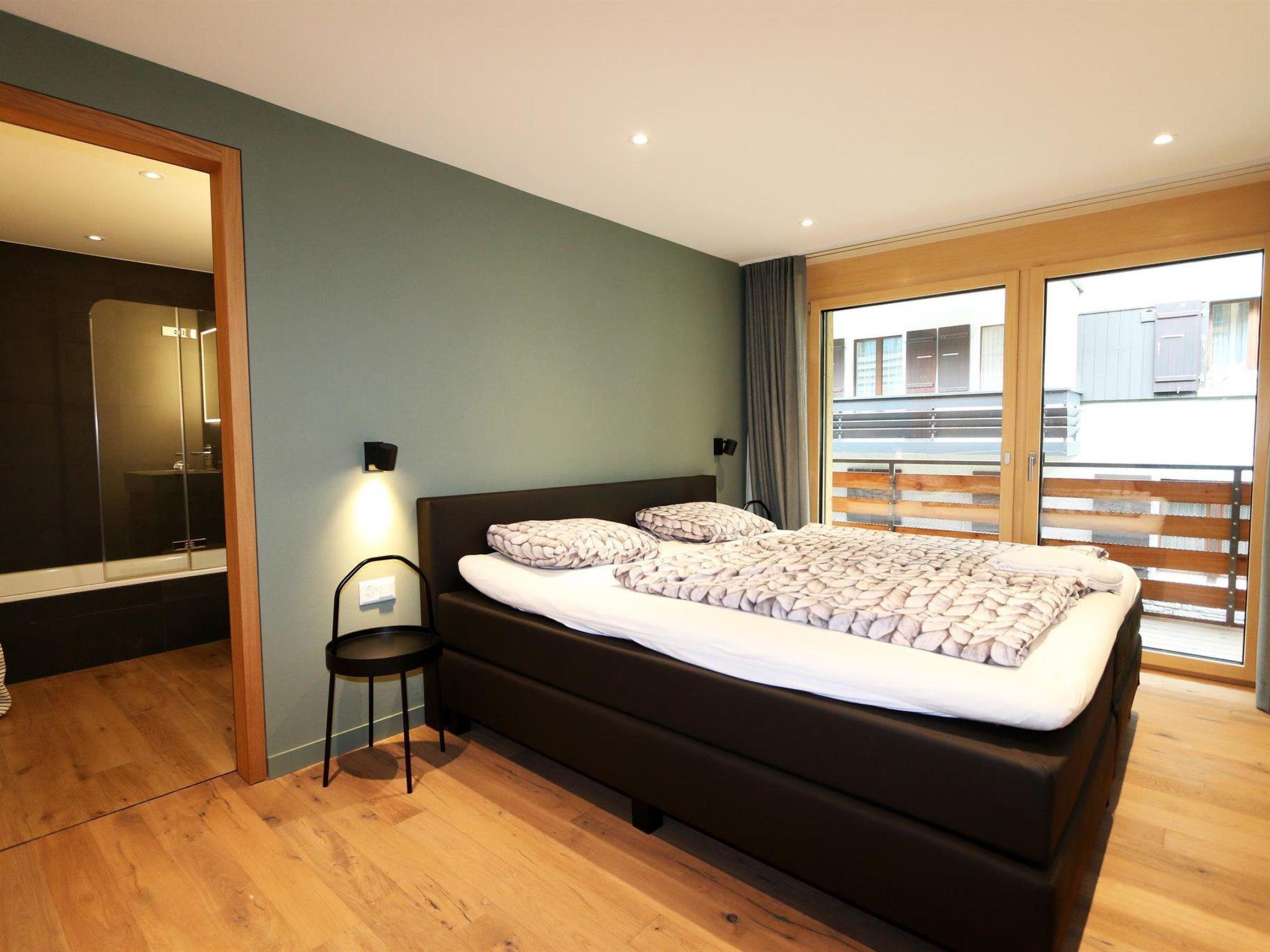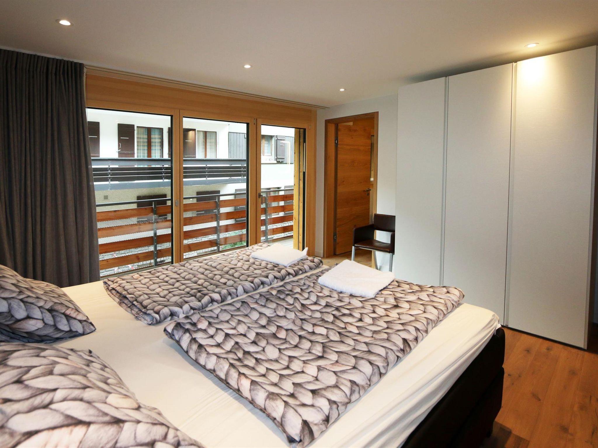 145 m2. More information by the provider: Newly built house Derby is located in the center of town right on the ski slopes (ski-in/out) and in proximity of many popular restaurants. Located on the top floor (elevator available), the Derby penthouse apartment (*****) is a sleek and modern apartment for up to 4 people. It features a master bedroom and a twin bedroom, both bedrooms with en-suite bathrooms (rainfall shower, WC, sink, hairdryer). The apartment has an open kitchen with dining area, living room with fire place and flatscreen-TV. The kitchen is fully equipped with dishwasher, combi-microwave, oven, Bora induction stove, coffee machine, toaster, kettle, cheese fondue set and raclette oven. Panoramic views from the private balcony and wireless internet available. The apartment is non-smoking and no pets are permitted. Private and heated ski storage facility is available in the building. Laundry room with washer and dryer is available in the building.