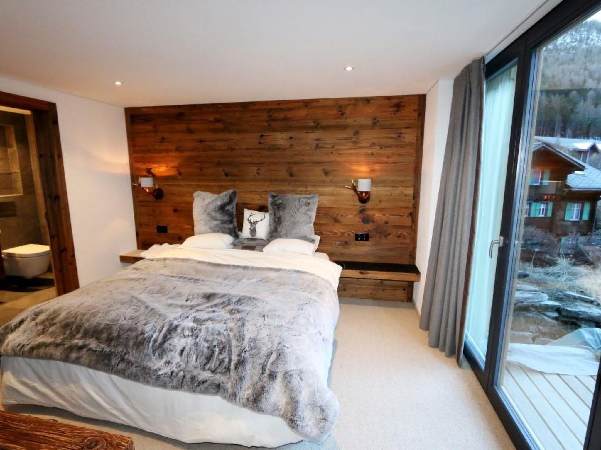 This is a unique, beautifully renovated modern chalet covering over 250 meters squared. The chalet has successfully managed to maintain the charm and warmth of a more traditional chalet but with the benefits of modern living and high quality functionality and features (e.g. high quality furniture, sauna, modern kitchen, modern bath-rooms, under-floor heating throughout etc). Spread over 3 floors the chalet can comfortably sleep 10 guests with 4 double bedrooms all with double beds and one pull out double sofa bed on the mezzanine floor separated by a curtain system and with a separate lighting system. The chalet can sleep more if children are staying in the same room as their parents (i.e. one room has a double bunk-bed and two other rooms have a single mattress pull out bed). The chalet has three bathrooms (one bathroom with a bath and the rest with rainfall showers) – one bathroom is en-suite to the master bedroom. The chalet has an old wood traditional finish and superb floor to ceiling windows to maximize light and mountain visibility. The chalet has a sauna, washing and drying facilities, a boot room with a separate entrance (heated boot storage and ski rack), large balcony, internal (living room) and external (balcony) fire place and a relaxing living area with a modern entertainment system (flatscreen TV, DVD and sound system). Wi-Fi is available throughout the chalet. The open-plan kitchen is fully equipped with an integrated oven and hobs, fridge, freezer and dishwasher. A extractor fan, microwave, toaster, kettle, coffee machine/press and fondue set is also available. The dining table can be extended to accommodate 12 people and the kitchen has the benefit of a breakfast bar (2 seats). The accommodation is non-smoking and no pets are allowed in the chalet.