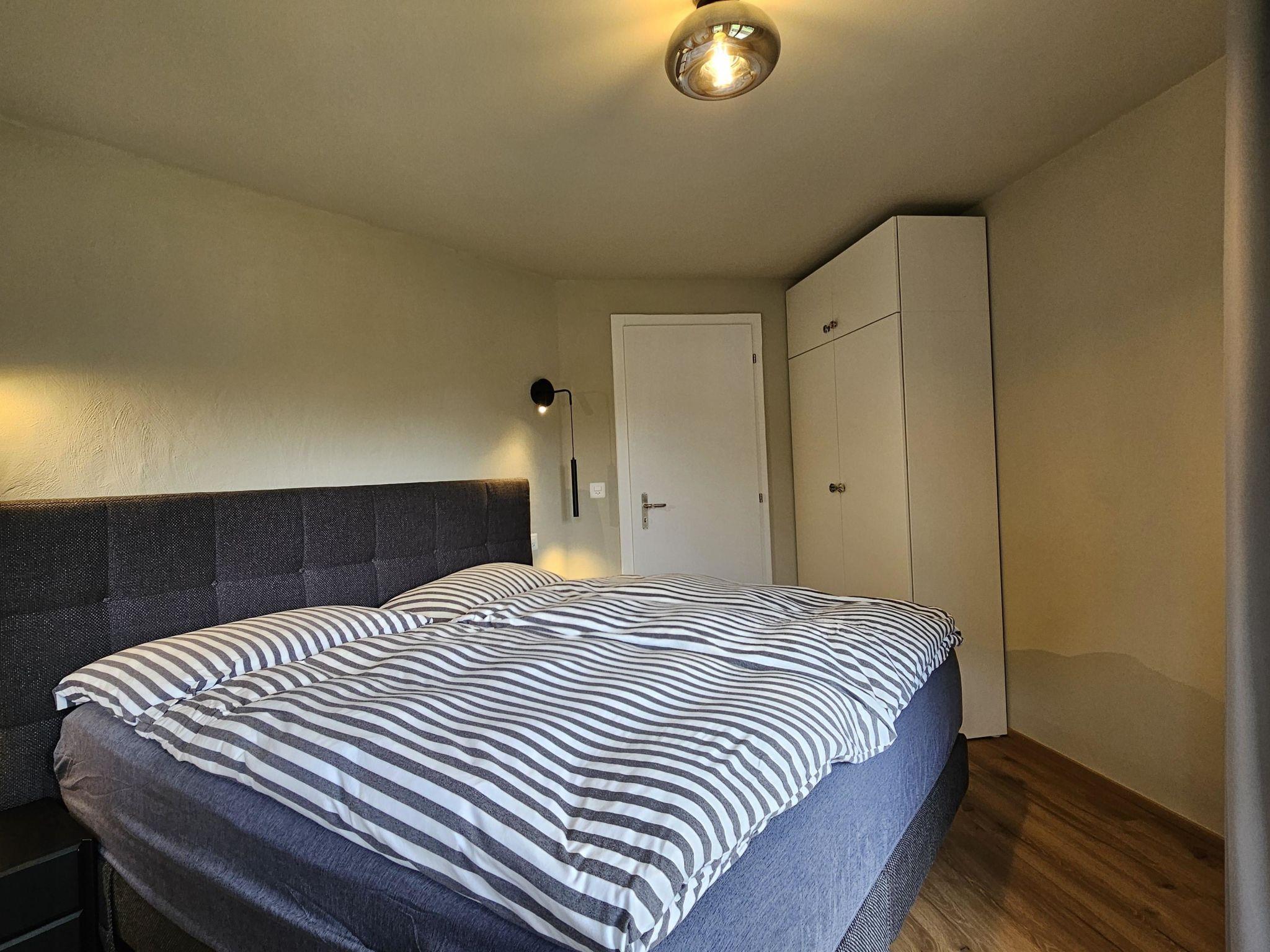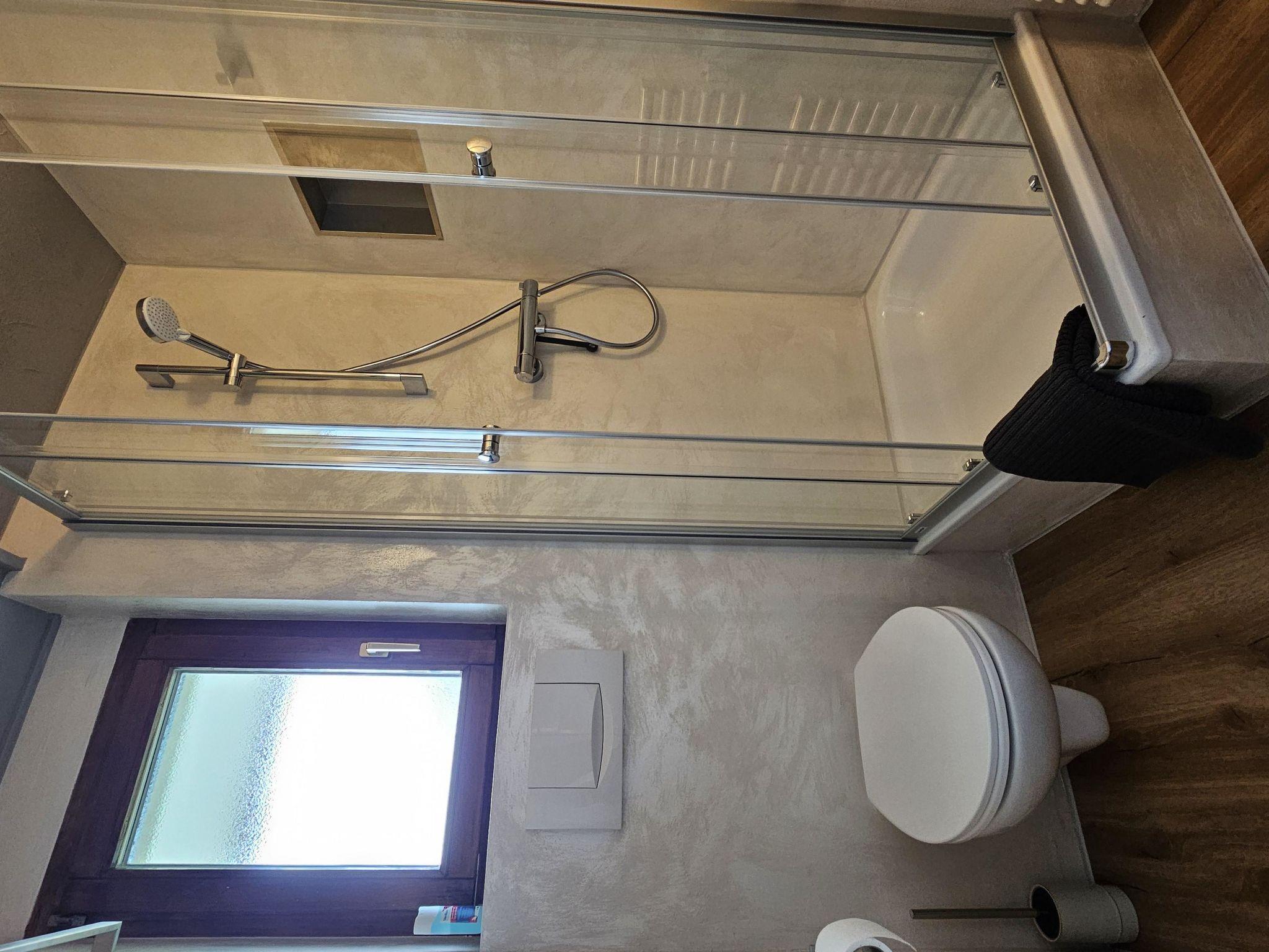 The newly renovated holiday apartment impresses with its stylish ambiance and creative artistic touches. Each room is uniquely designed with individual wall features that enhance its special charm. In the living room, a rustic stone wall adds cozy chalet flair. The kitchen harmonizes with the wall colors and features an artistic plaster ornamented backsplash. The two bedrooms each showcase a distinctive wall design: one with a large plaster wall, the other with a colorful Swahili-style wall, adding an exotic touch. There are two fully equipped bathrooms (seamless and in Swahili design), each with a toilet and shower. One bathroom is accessible from a bedroom, the other from the living room. High-quality box spring beds in both bedrooms ensure restful sleep—because comfort is key on vacation. The living room offers a large dining table, a comfortable sofa, a big TV with Yallo-TV and a Google Nest speaker. Carefully chosen designer lamps create a warm and cozy atmosphere. The kitchen is practical and modern, equipped with a dishwasher, ceramic hob, fridge with freezer compartment and oven—all necessary utensils are provided. Each room has its own balcony, furnished with chairs and a table—perfect for relaxing outdoors. Guests also have access to a spacious ski storage room, a laundry room and there is a lift in the building.
