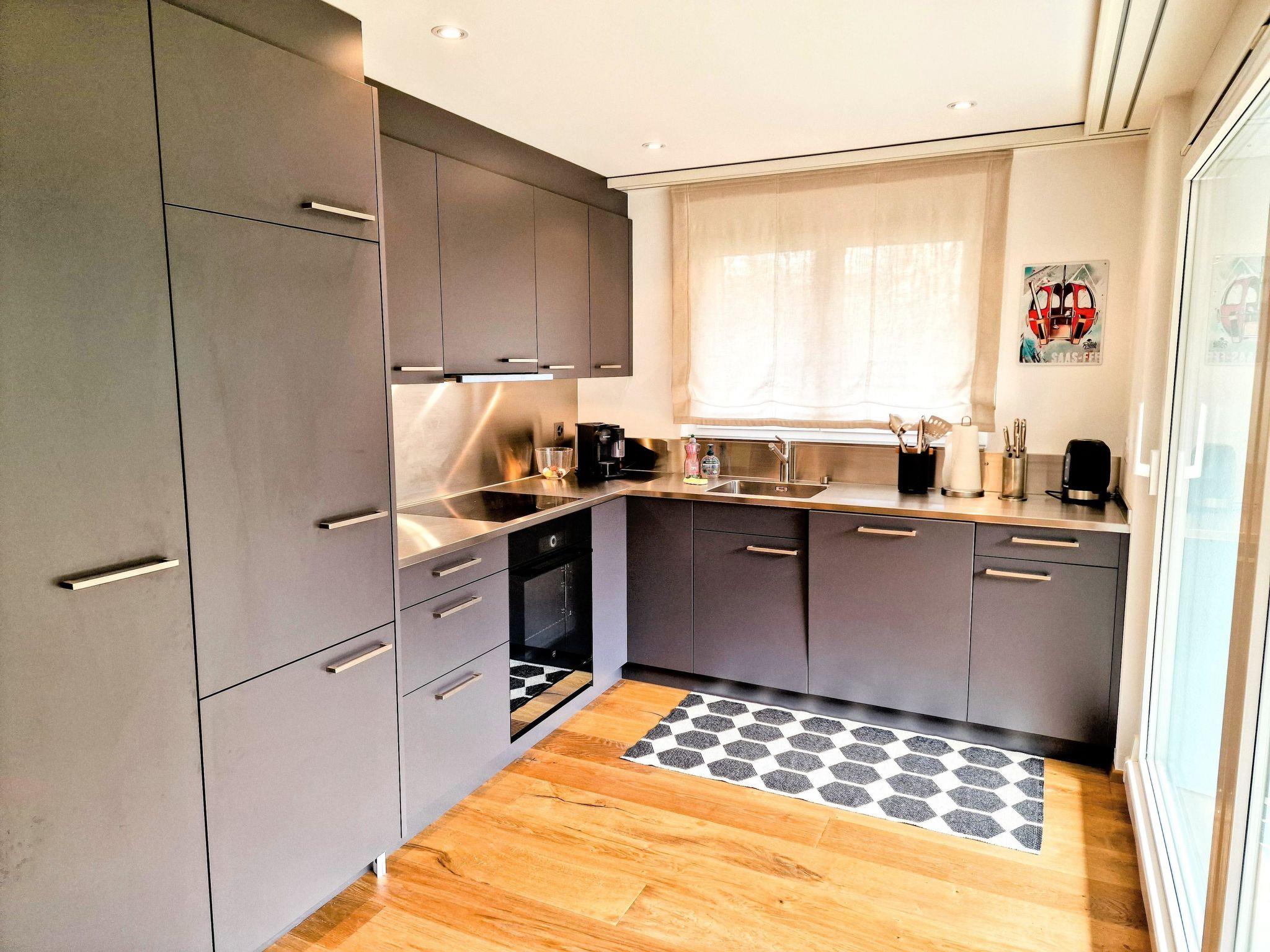 This charming holiday home offers a comfortable and well-appointed space for families. The layout includes: A master bedroom with a king-size bed and an en-suite bathroom, providing a private and relaxing retreat. A second bedroom, also featuring a king-size bed, perfect for another couple or guests. A third bedroom designed with two double bunk beds, accommodating up to four children or additional guests. There is also an additional bathroom with a shower and WC. The apartment boasts a separate, fully equipped kitchen, complete with a dishwasher, combi steam oven, electric hob, Nespresso machine, toaster, kettle, fondue set and raclette set, ensuring you have everything you need to prepare delicious meals. Enjoy meals together in the dining area. The living room is furnished with a comfortable sofa and a flat-screen TV, ideal for relaxing after a day of adventures. Step out onto the balcony to enjoy panoramic views of the surrounding mountains. Guests also have access to a sauna, jacuzzi and a coin-operated laundry room within the building. Please note that this apartment is non-smoking and pets are not permitted.