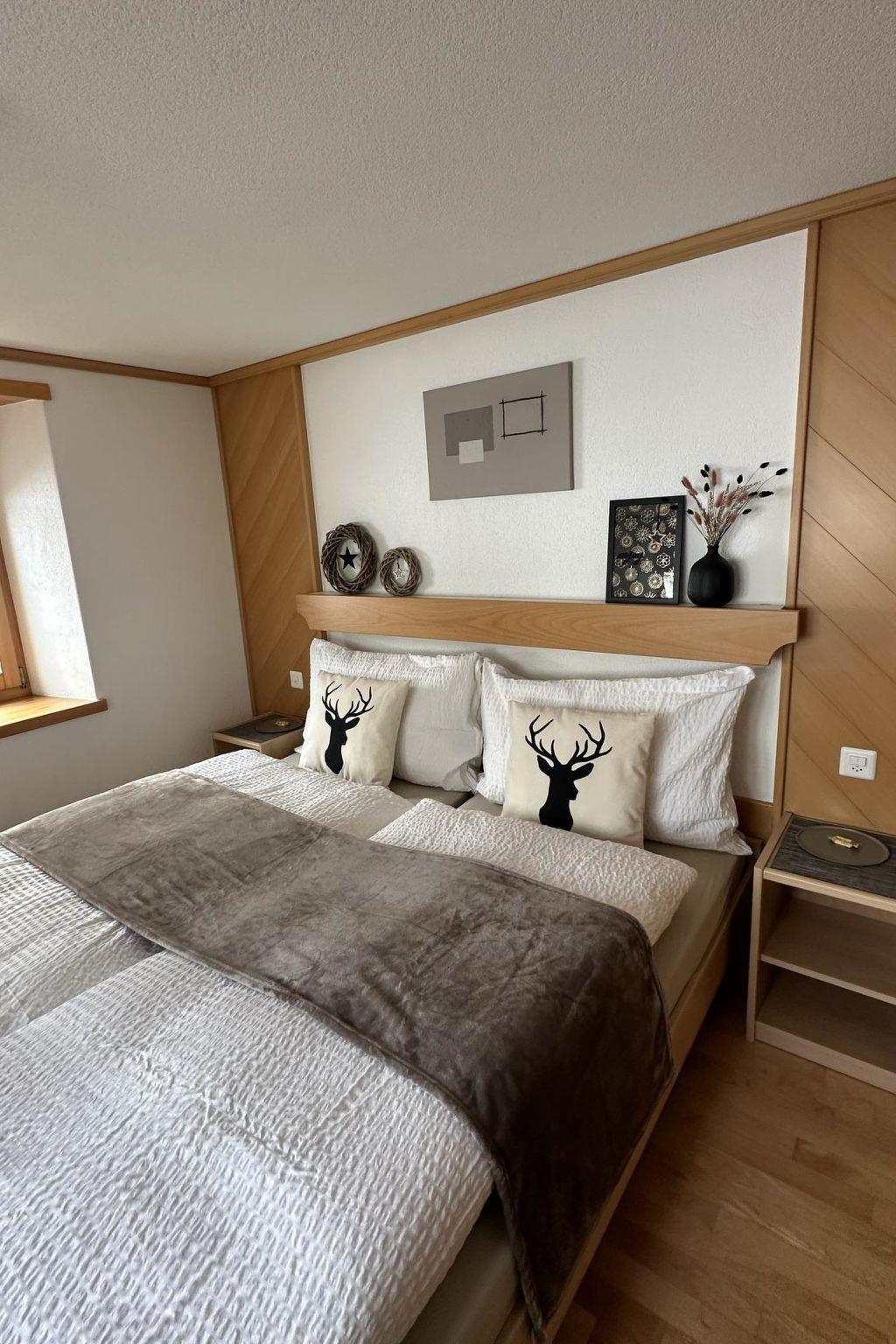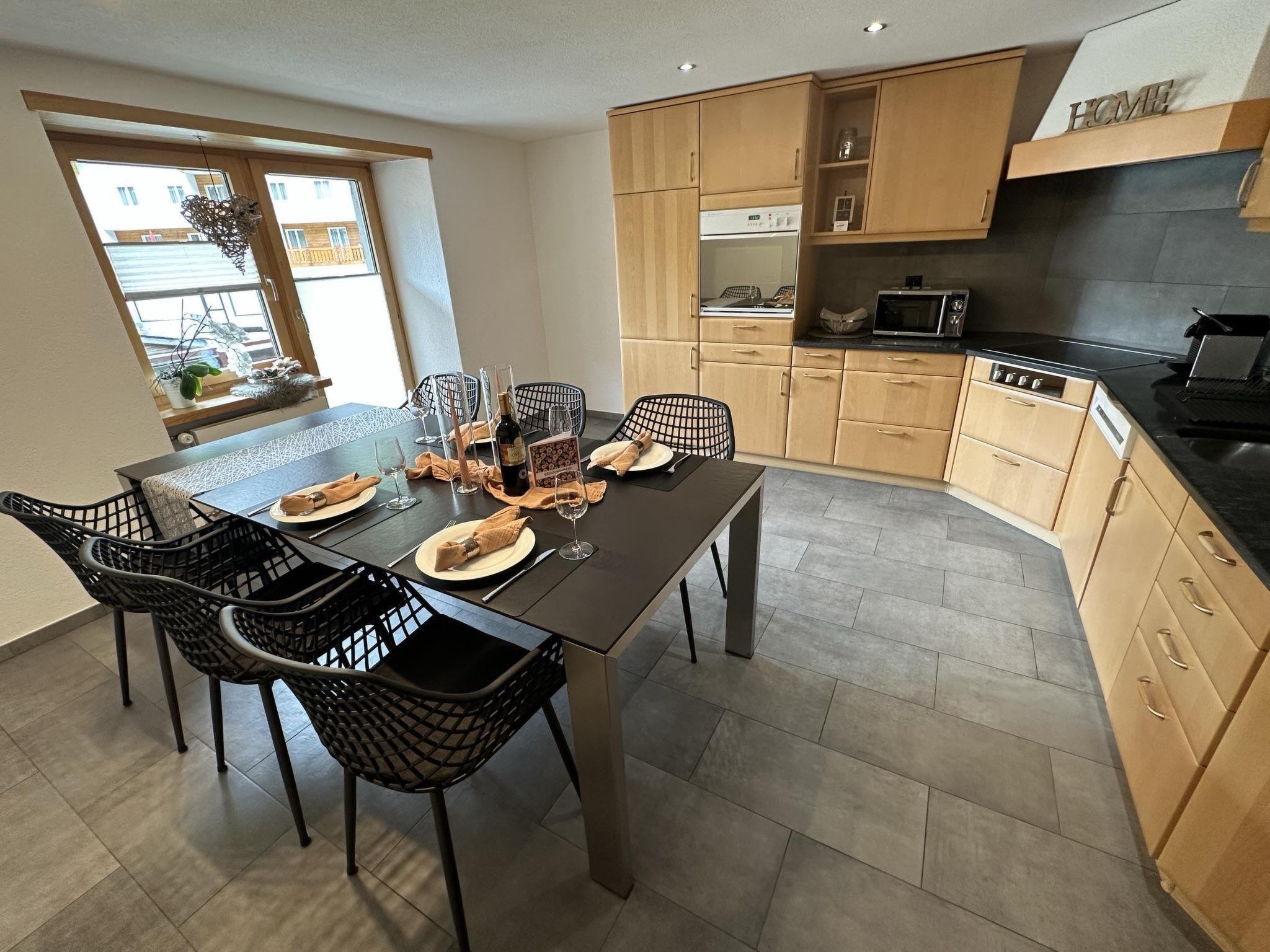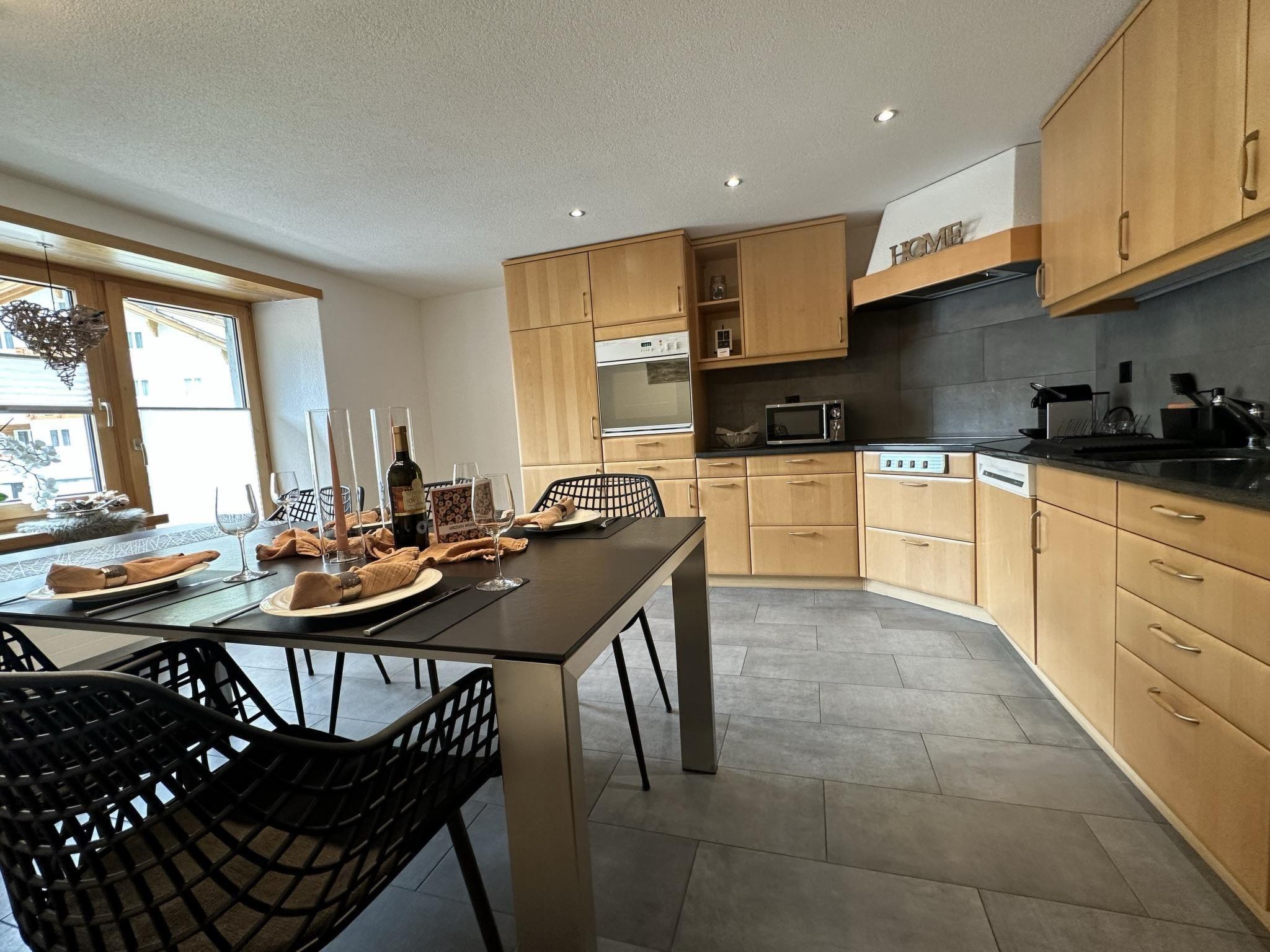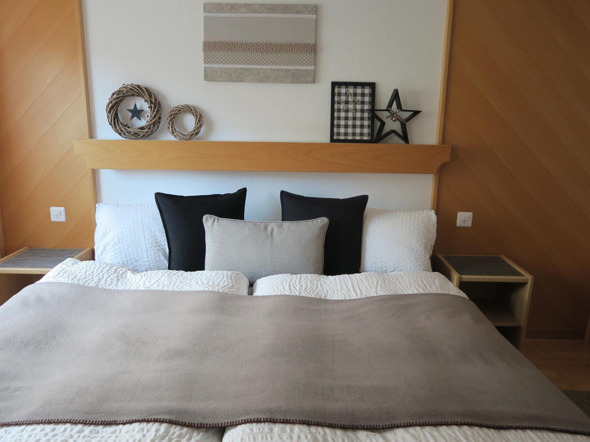 Die 4.5-Zimmerwohnung befindet sich im 1. Stock und bietet Platz für 2 - 5 Personen (ca. 95m2). Das Apartment ist ausgestattet mit: - Wohnzimmer mit Flachbild-TV-SAT / DVD-Player (Blu-ray) - DAB Digital Radio - Kostenfreies WLAN (Internet) - Eine separate Küche mit Geschirrspüler, Glaskeramik-Kochfeld, Backofen, Kühlschrank, Gefrierschrank, Nespresso Kaffeemaschine (Kapselsystem), Filter-Kaffeemaschine, Mikrowelle, Toaster, Racletteofen und Fonduerechaud - Zwei Doppelschlafzimmer, eines davon mit Waschbecken - Ein Einzelzimmer mit Waschbecken - Babybett (Reisebett) und Zubehör auf Anfrage vorhanden - Bettschutzgitter - Nasszelle mit Dusche, WC und Waschbecken - Haartrockner und Kosmetikspiegel - Handtuchradiator - Bettwäsche, Frottier- und Küchentücher - Holzparkett - Südbalkon mit Tisch, Stühlen und Sonnenschirm - Gratis Parkplatz beim Haus - Skiraum - Skischuhtrockner - Haustiere sind nicht erlaubt - Nichtraucherwohnung