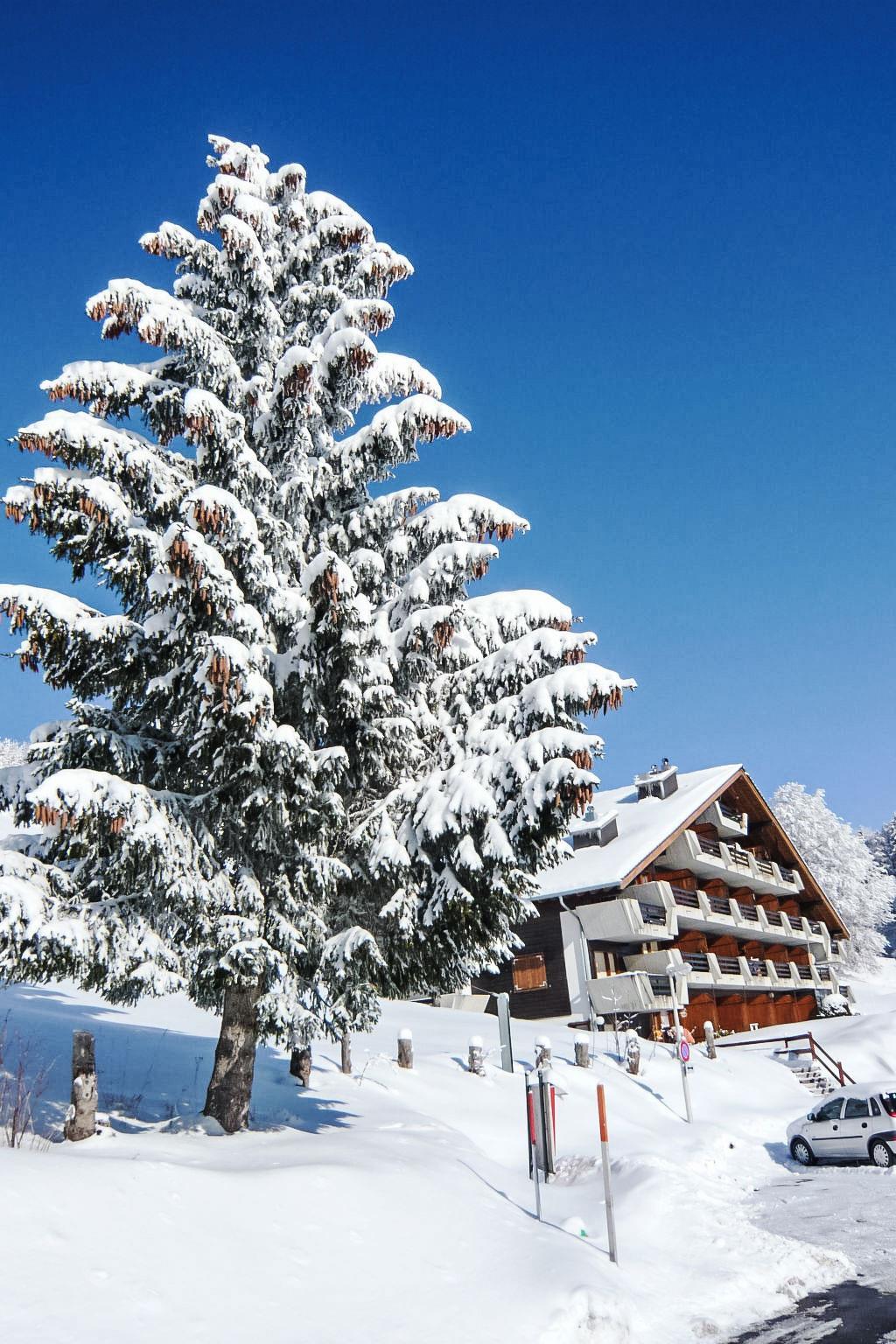 Les Petites Roches: Chalet "Licorne". On the outskirts, 3 km from the centre, in a sunny position, south facing position. In the house: storage room for skis, central heating system, washing machine (extra) (for shared use). Public parking 20 m. Shop 3 km, restaurant 100 m, bus stop 500 m, railway station 3 km, outdoor swimming pool 500 m, indoor swimming pool 2 km, thermal baths 20 km. Tennis 3 km, sports centre 3 km, skisport facilities 2 km, ski school 2 km, children's ski school 2 km, cross country ski track 2 km, ice rink 8 km. Please note: car recommended. The chalet is situated in the upper part of the residence.