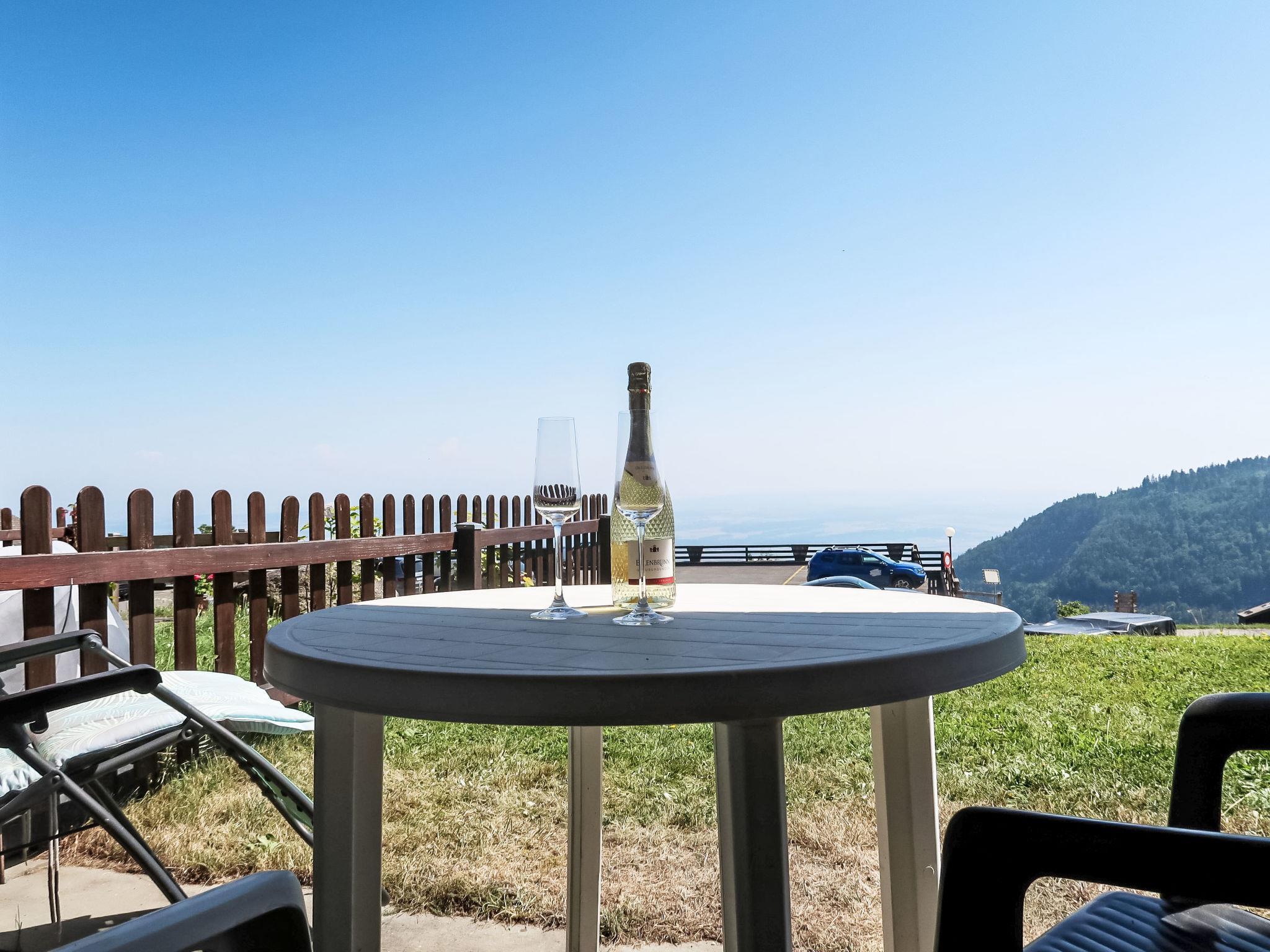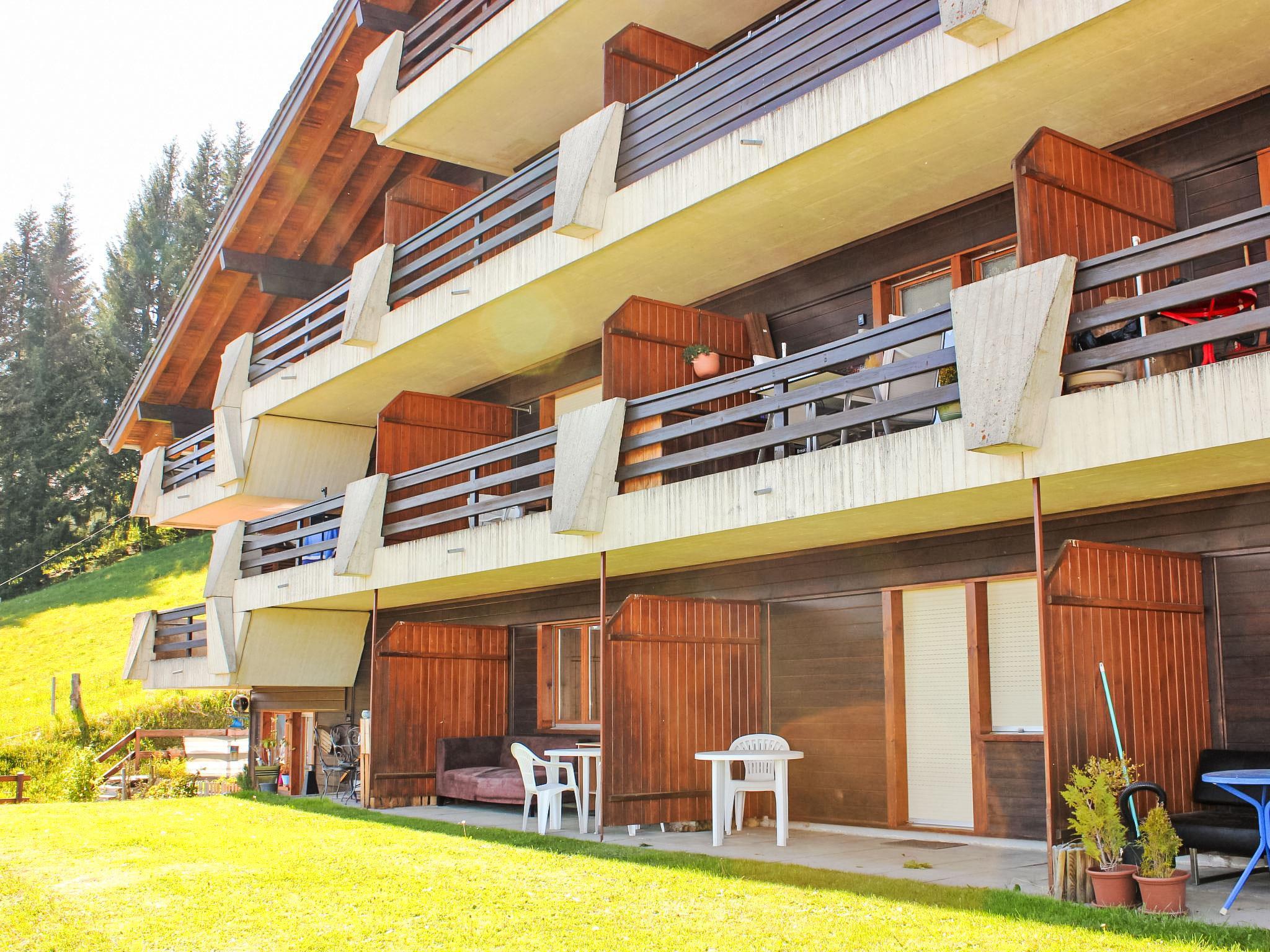 1-room apartment 25 m2, on the ground floor, south facing position. Practical furnishings: living/sleeping room with 1 sofabed (150 cm, length 190 cm), open-hearth fireplace (only for decoration), dining table. Exit to the patio. Kitchenette (4 hot plates, oven, kettle, microwave, fondue Set (cheese)). Bath/WC. Heating. South facing position, small patio. Terrace furniture. Beautiful view of the mountains and the valley. Facilities: baby cot for up to 2 year olds (extra). Parking.