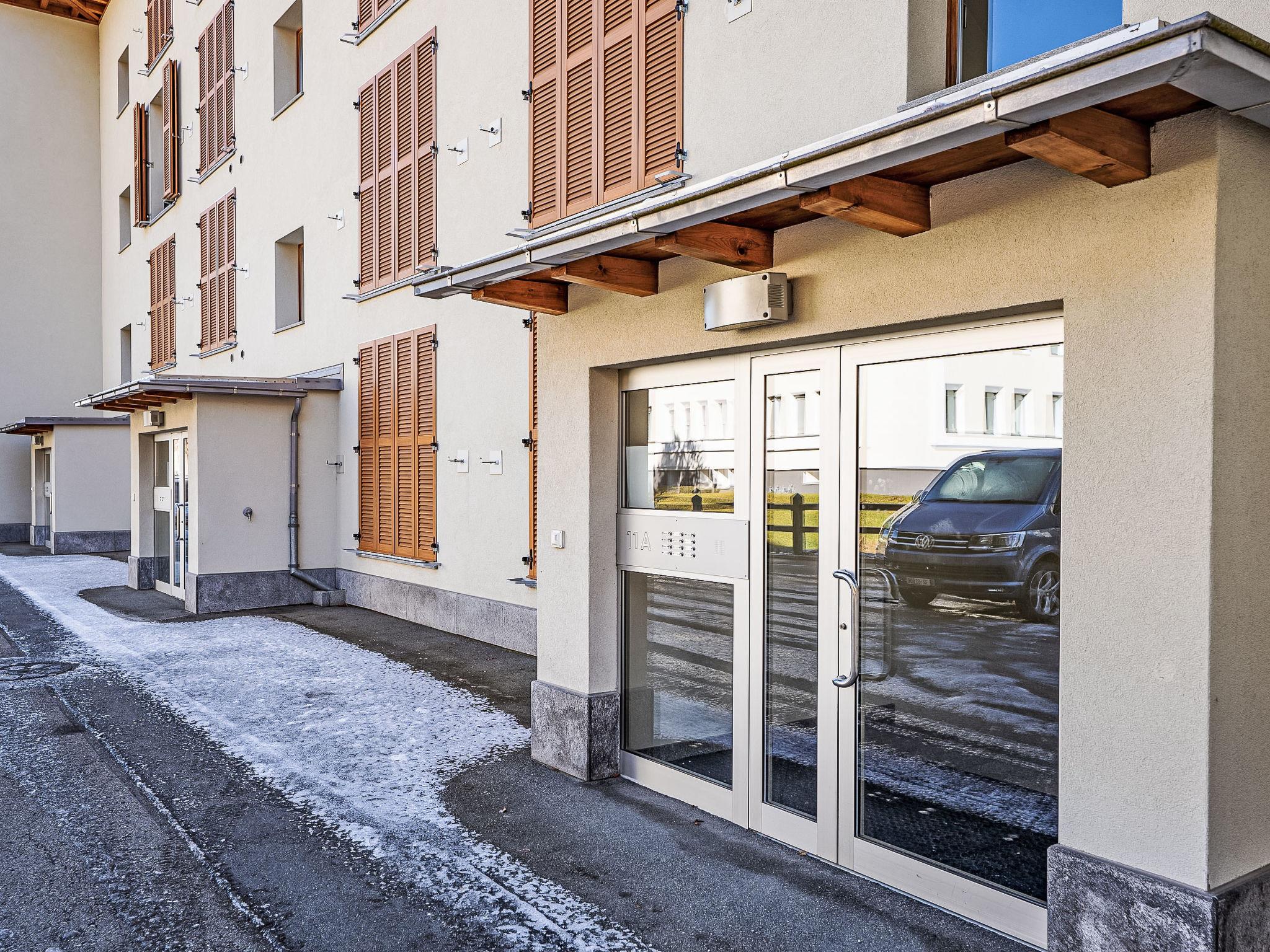 Samedan: Comfortable apartment house "Chesa Promulins", 4 storeys. Above Bahnhof Samedan, in the residential district. In the house: lift, storage room for skis, washing machine, tumble dryer (for shared use, extra), drying room. Parking, communal covered parking. Grocery 500 m, bar, bus stop 400 m, railway station "Samedan" 400 m. Indoor tennis centre 7 km, minigolf 6 km, riding stable 6 km, walking paths from the house 500 m, ski lift 1 km, ski school 2.5 km, cross country ski track 1 km, ice rink 1.5 km. Nearby attractions: Chesa Planta in Samedan 800 m, Segantini Museum St. Moritz 6 km, Nietsche Haus in Sils-Maria 16 km, Olympic Bob Run St. Moritz 5.5 km. Well-known ski regions can easily be reached: Coviglia - Piz Nair 2.6 km, Corvatsch - Furtschellas 14 km, Diavolezza - Lagalb 18 km. Well-known lakes can easily be reached: St. Moritzer See 7 km, Silvaplana See 13 km, Silser See 17 km. Hiking paths: Corviglia - Piz Nair, Muottas Muragl, Val Bever & Val Rosegg.