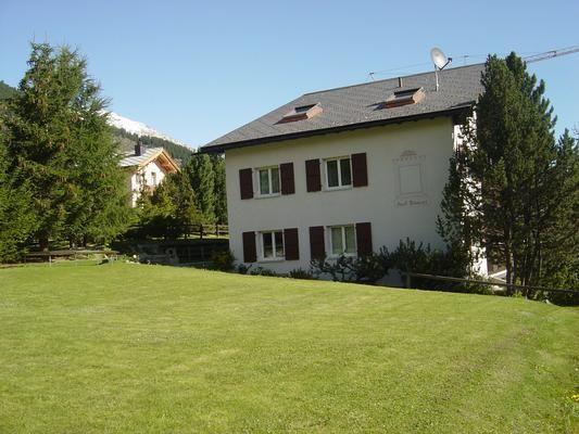 Welcome to Engadin. Cosy 3.5 room flat on the 1st floor of a quietly located apartment building. Garage space in the car park. Panoramic view of the Bernina group. Large garden with fireplace and sunbathing lawn. Spacious living room with TV, radio, CD player, large dining table with corner bench and chairs, serving hatch to kitchen, lounge table with couch and upholstered armchairs. One double and one triple bedroom (one of which is a bunk bed) with wardrobes and bedside tables. An additional toddler bed is available. Kitchen-cum-living room with table, corner bench, electric cooker, dishwasher and fridgeKitchen equipment (Kitchen1): Coffee machine, fondue, raclette. Bathroom with bath, shower and WC. Winter garden/balcony. Walking distance to the next bus stop 3 minutes, to the railway station 10 minutes. Normal water consumption, lighting and cooking electricity are included in the all-inclusive price. The tenant undertakes to keep the flat clean. Cooking utensils and crockery must be left clean for the next tenant. Internet access is free of charge. Care must be taken of the furniture and other furnishings. The technical equipment must not be tampered with. Damage must be reported to the caretaker immediately. The landlord must be compensated appropriately. Missing inventory items will be charged in full to the tenant. If there is a risk of frost, the radiators must not be set to zero. The landlord accepts no liability for the effects and objects brought in by the tenant. The holiday flat may be occupied by a maximum of five persons. Subletting is not permitted. The tenant undertakes to comply with the house rules.
